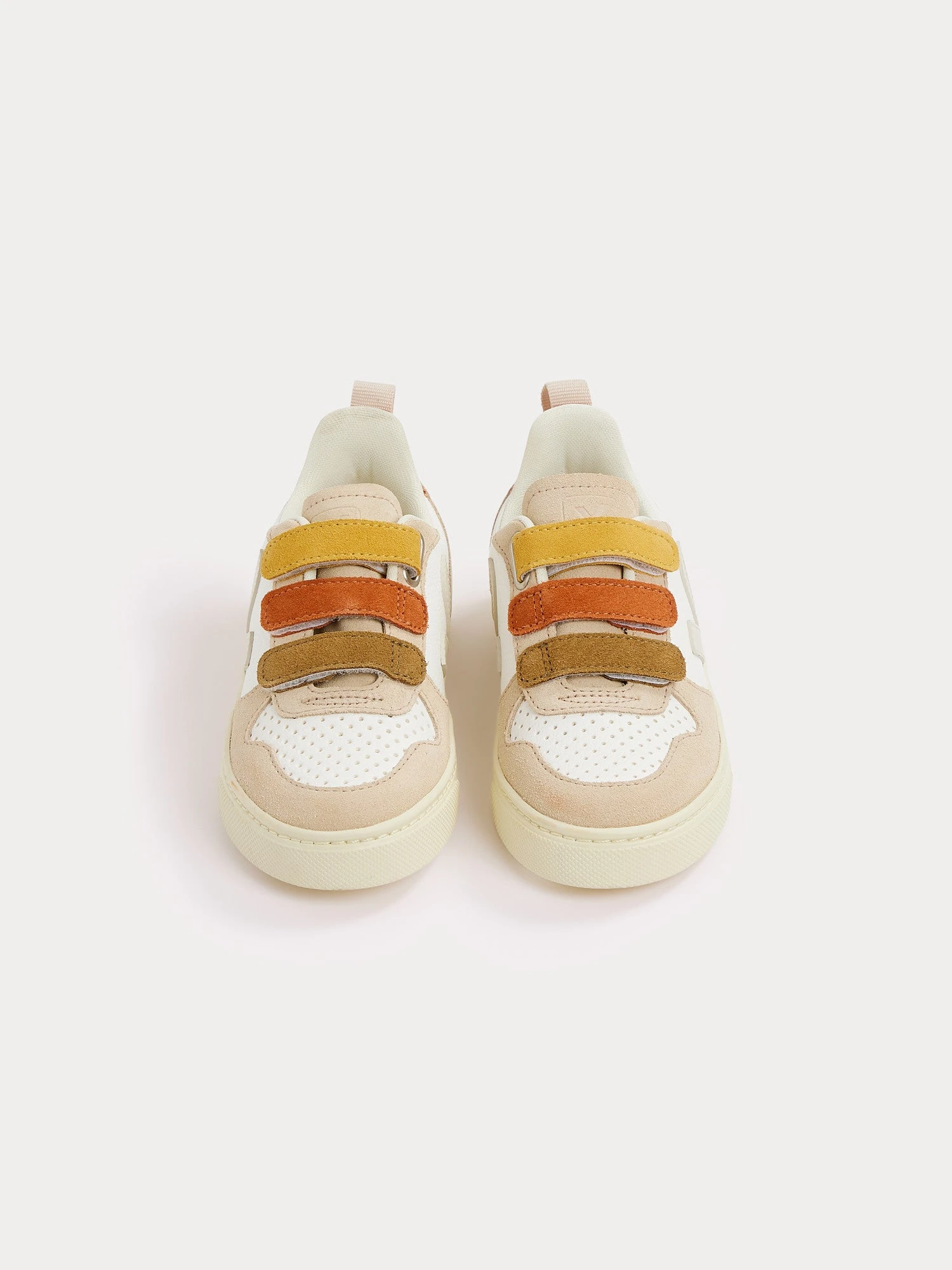 Tout en couleurs, ces baskets basses Bonpoint x Veja offrent un bon maintien grâce à leurs trois scratchs et leur contrefort rembourré. La signature Bonpoint apparaît sur le côté du talon.