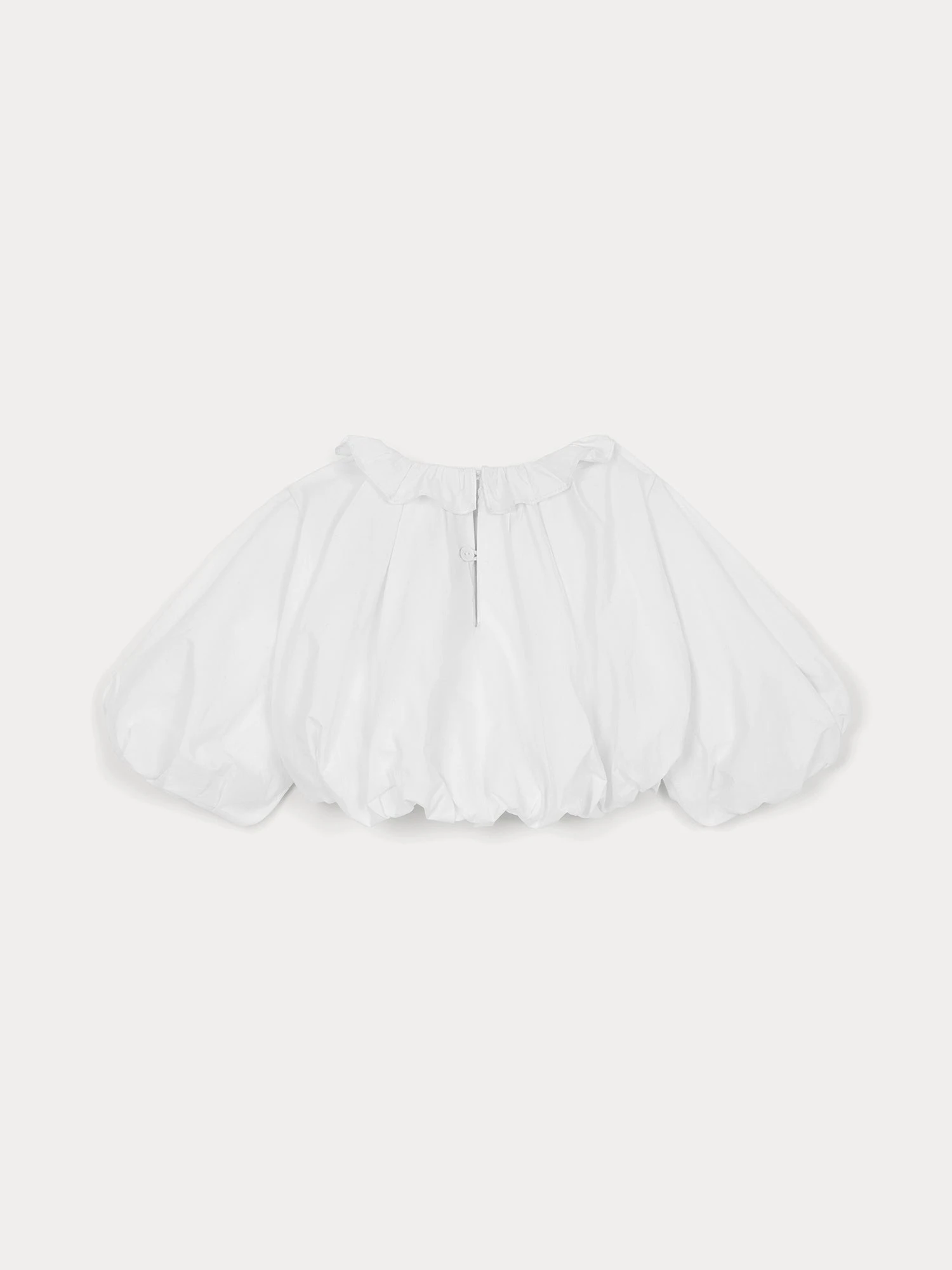 La blouse Ellie pour bébé est le fruit du savoir-faire de la Maison et de Khaite, marque américaine à l’avant-garde du sportswear. Son beau volume est créé par les manches longues et le bas bouffant.