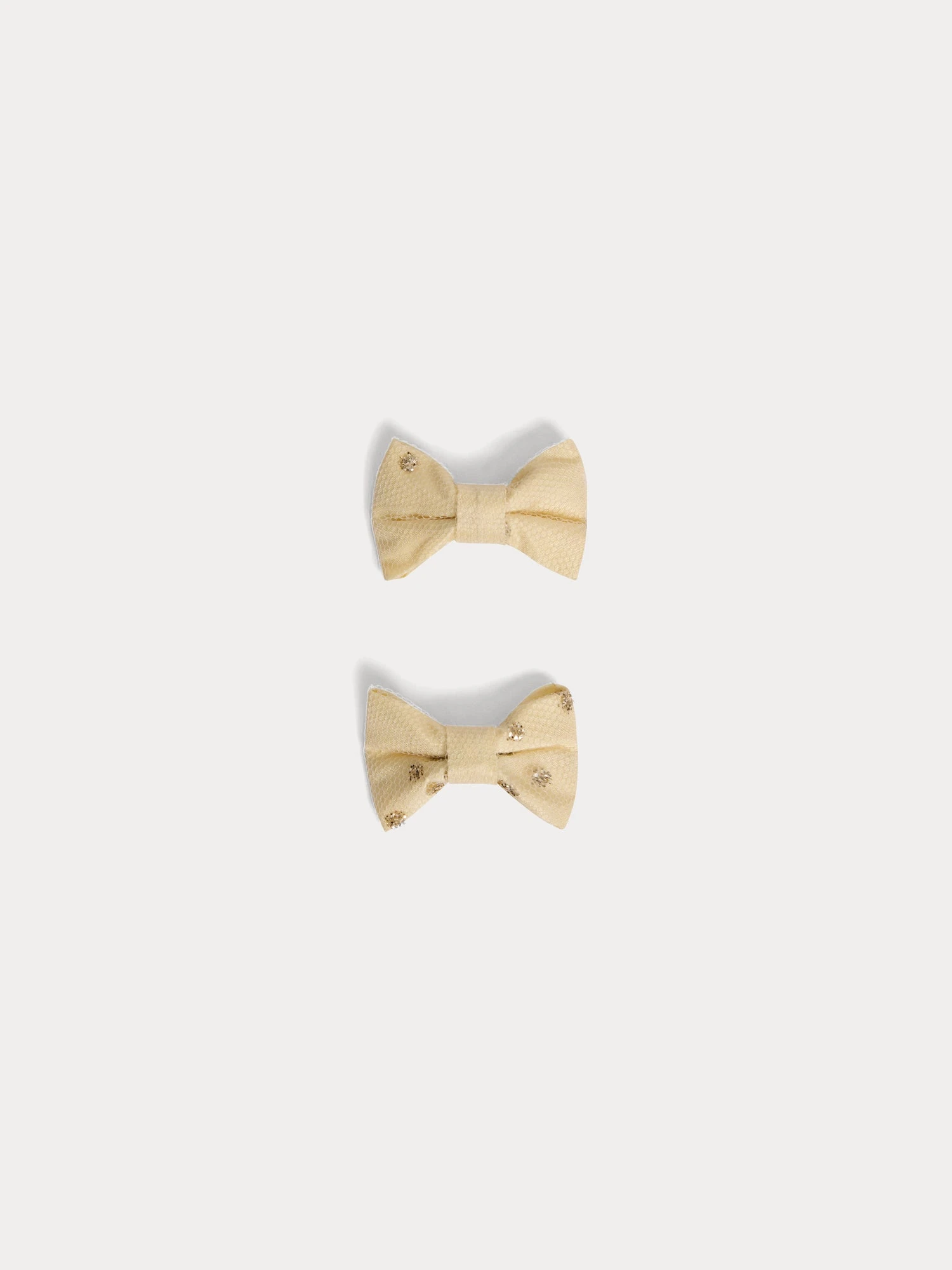 La barrette Miniclic est un accessoire iconique de la Maison destiné aux filles. Cette pince pour cheveux en forme de nœud se recouvre ici d’une résille fine et de strass charmants.