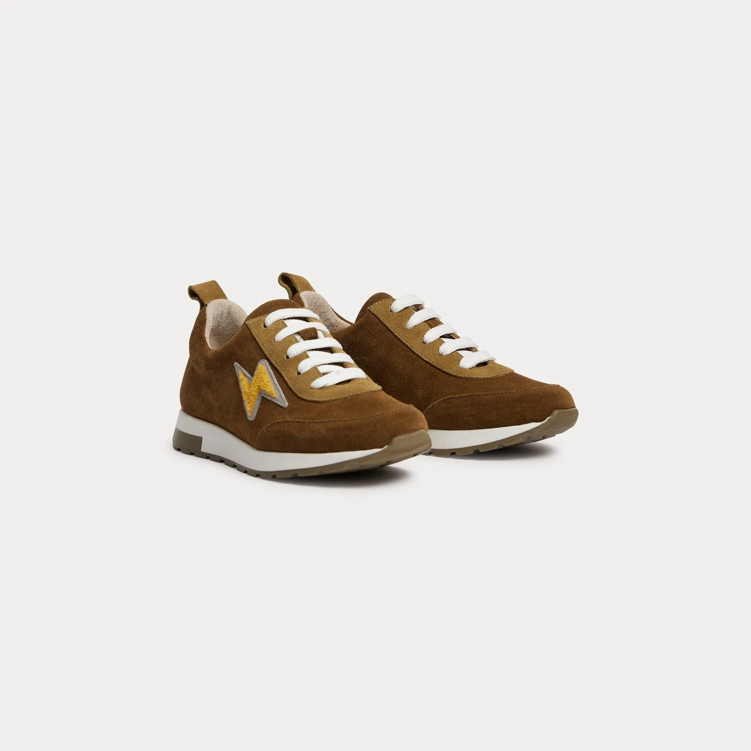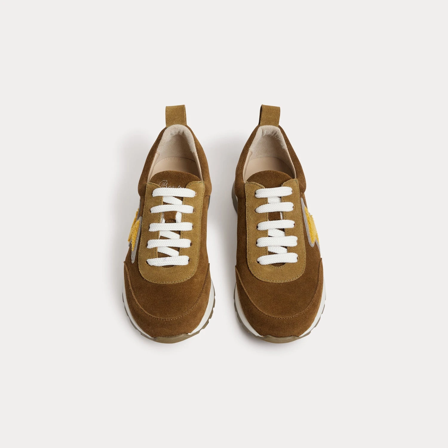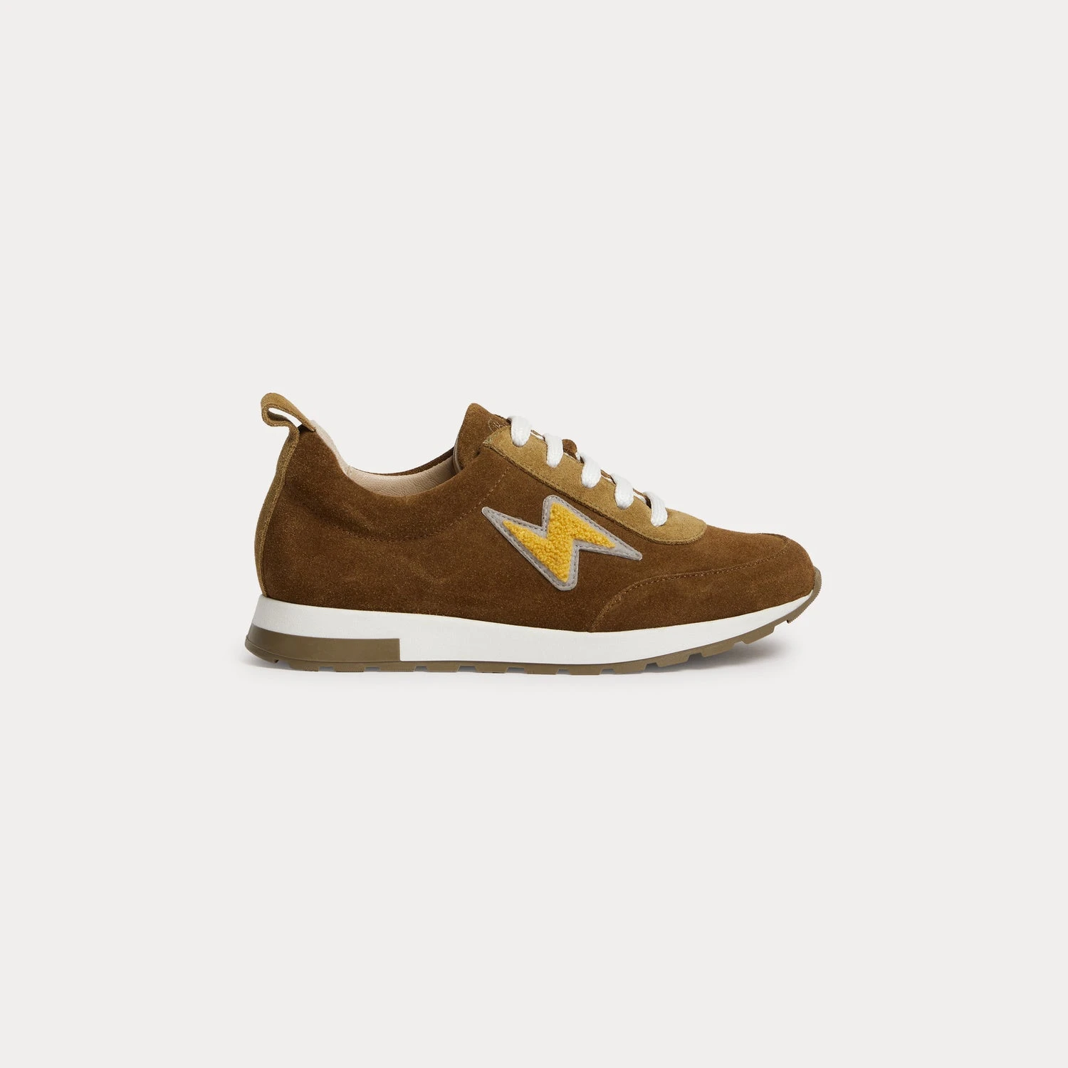 Les baskets Blueberry se distinguent par leur confection en croûte de cuir pleine de sophistication. Un patch éclair en bouclette contrastante décore le côté.