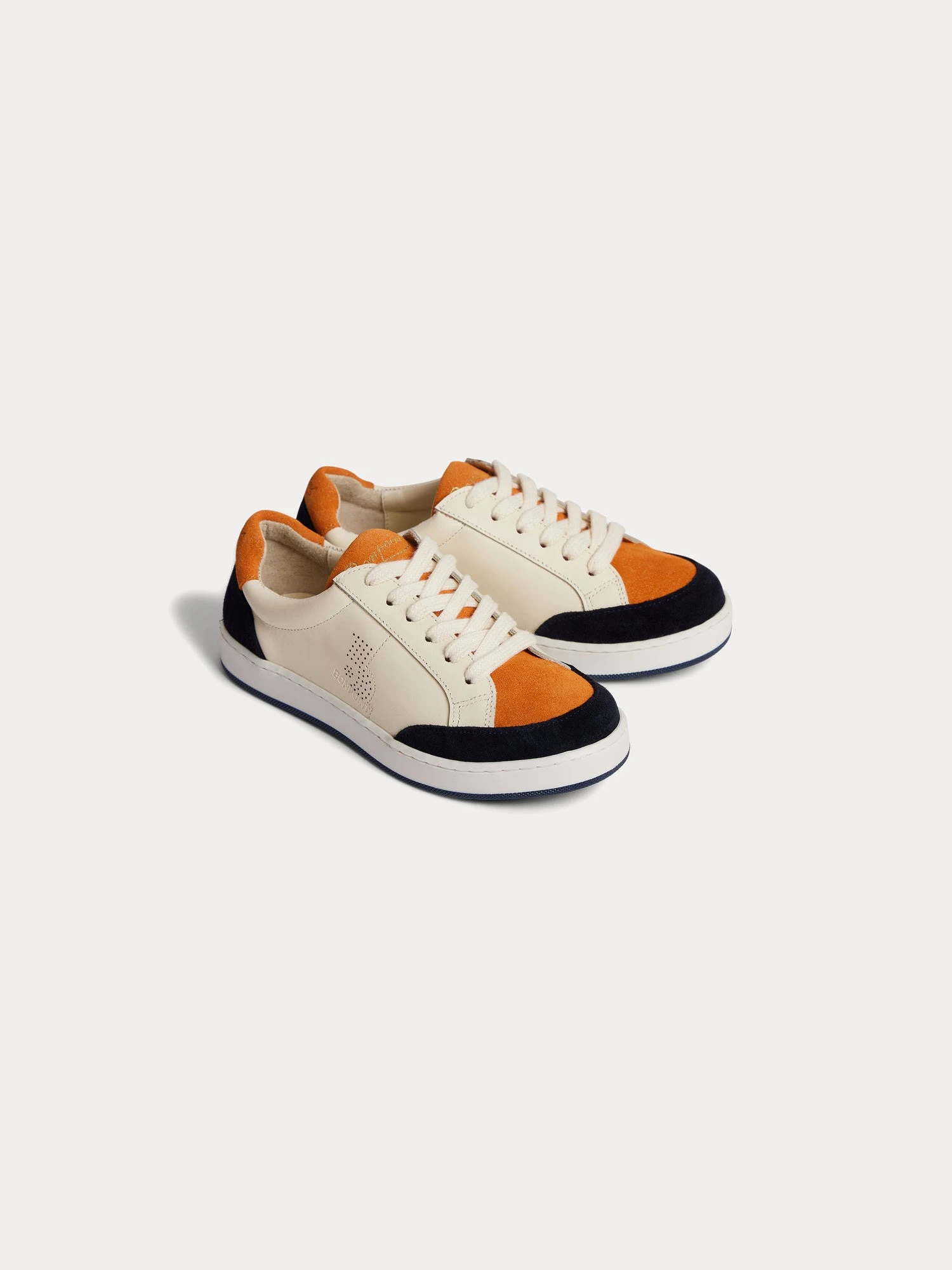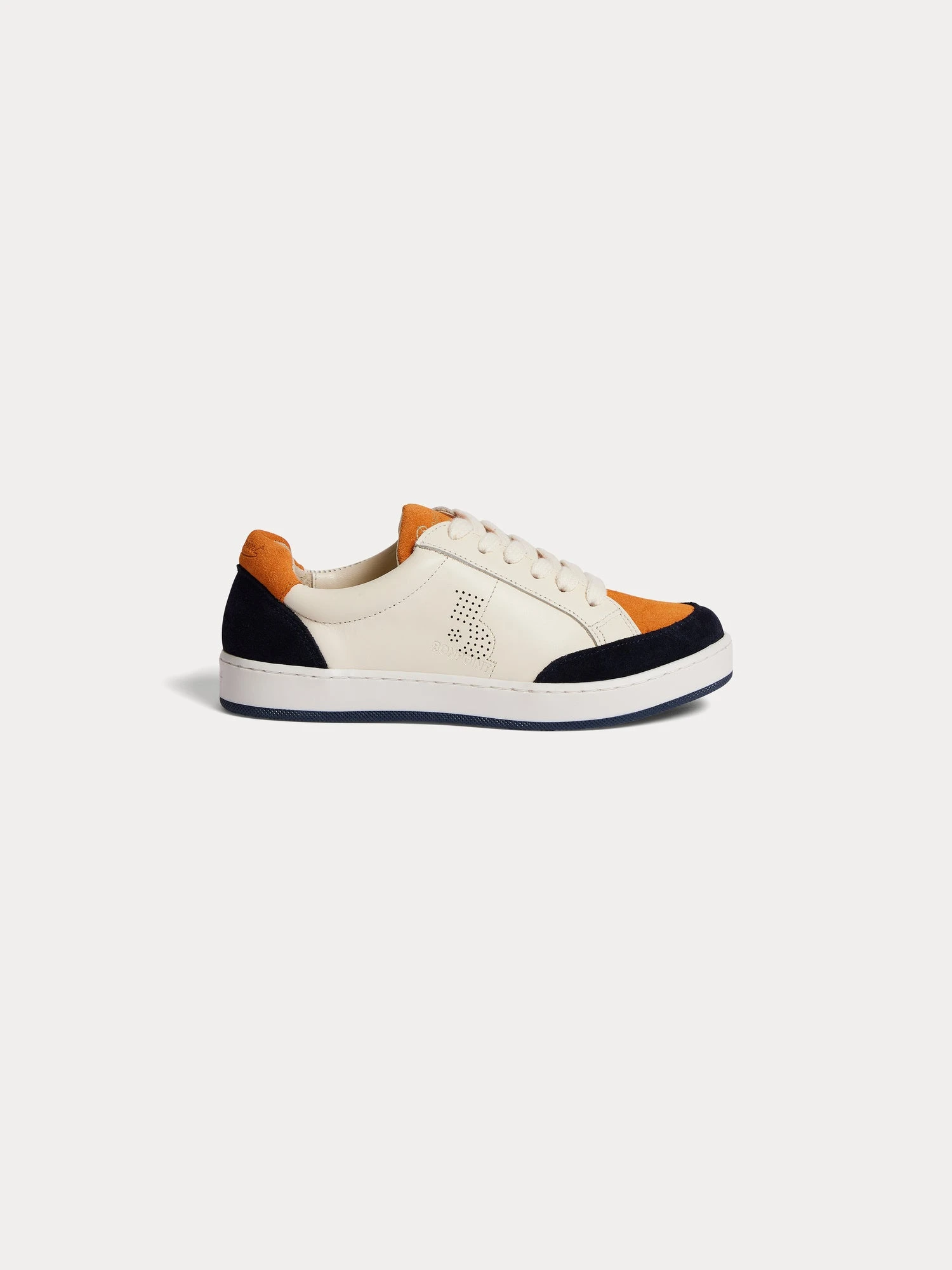 En cuir lisse avec empiècements velours contrastants, ces baskets basses Cameron plaisent autant aux filles qu’aux garçons. Le logo Bonpoint se retrouve perforé sur l’extérieur du pied et brodé sur la languette.