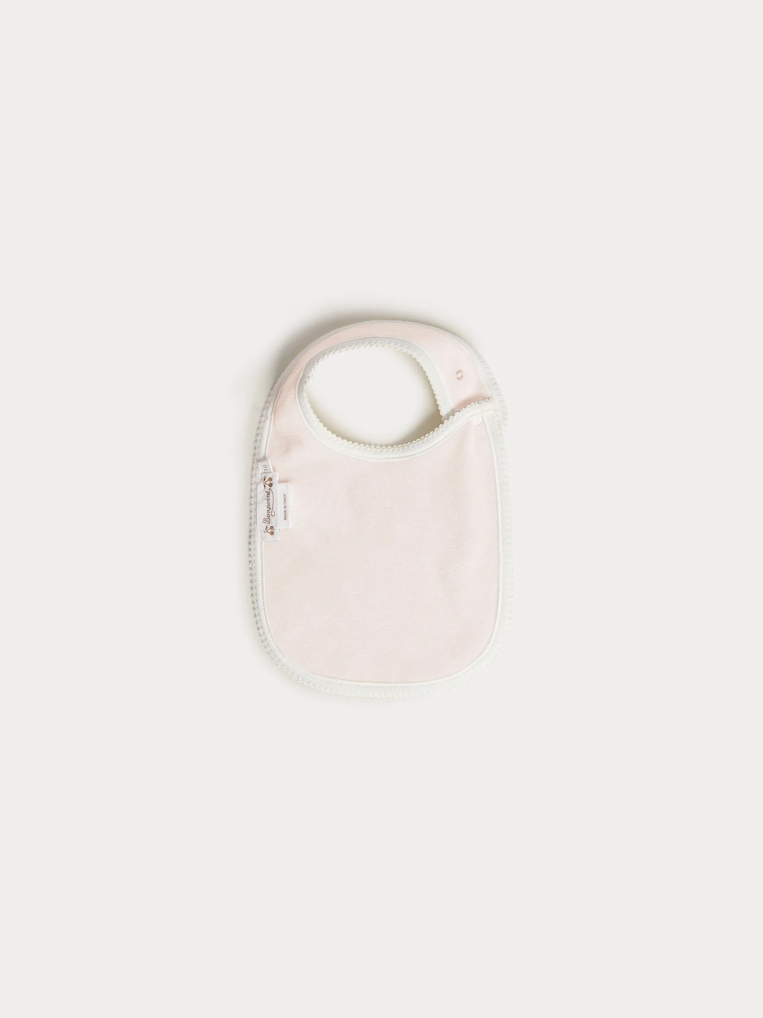 Ce bavoir pour bébé Avibis est très élégant avec ses finitions à picots et sa broderie Bonpoint en ton sur ton devant. Il est confectionné en tissu velours éponge.