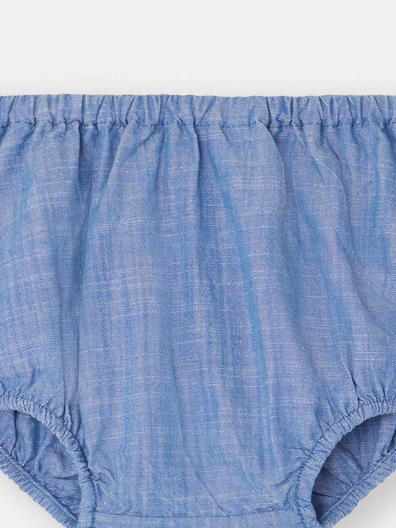 Décliné ici en chambray, le bloomer Aki pour bébé est un modèle incontournable de la Maison. Il est confectionné dans un coton issu de l’agriculture biologique doux et respectueux de l’environnement.