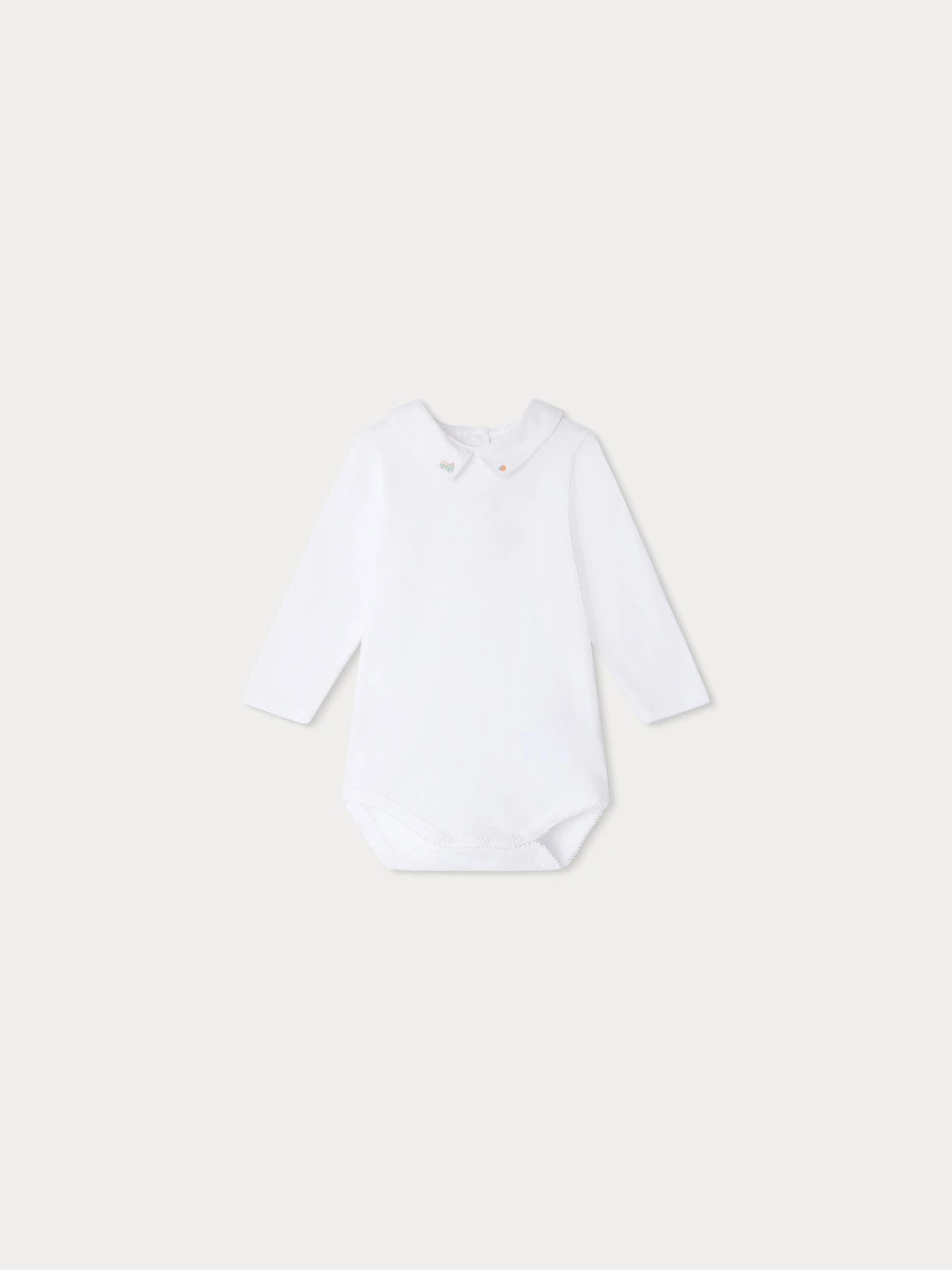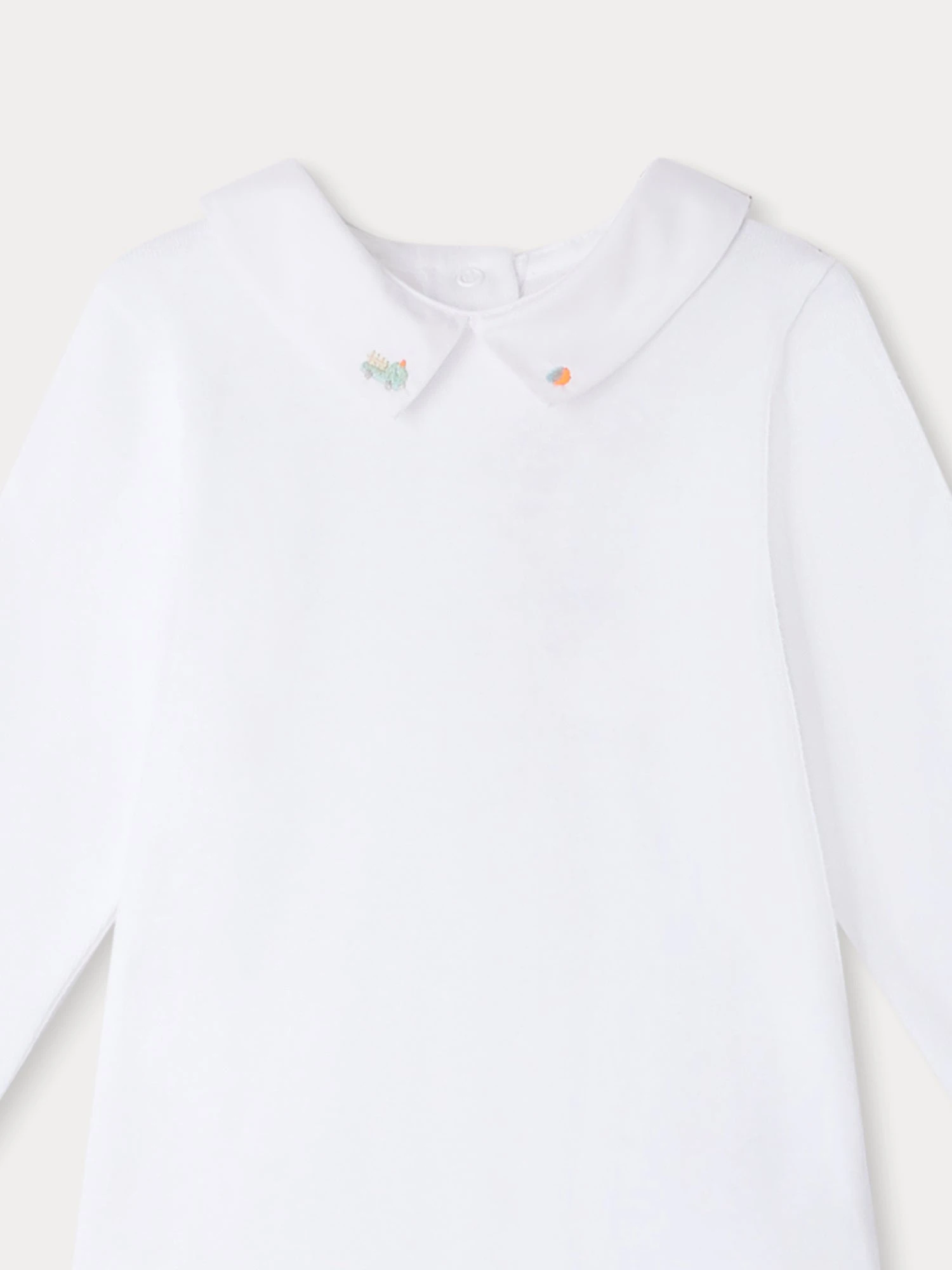 En côtes de coton biologique, ce body Juillet pour bébé s’agrémente d’un col brodé à la main et de manches longues. Les pressions au dos et à l’entrejambe facilitent l’habillage.
