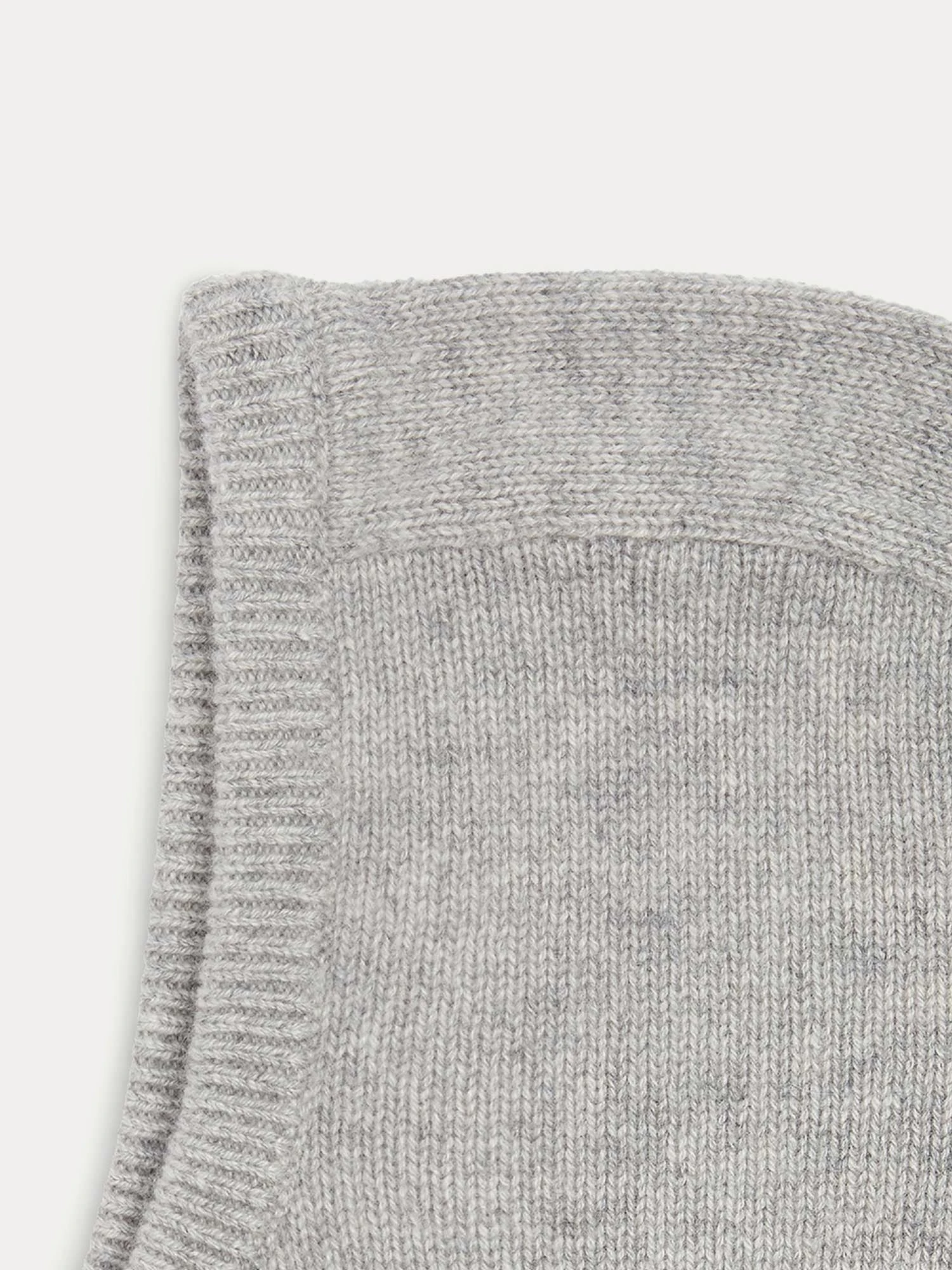 Avec cette cagoule gris chiné clair, les années 90 font un retour remarqué dans les dressings. Enveloppant toute la tête et le cou, cet accessoire en cachemire tient bébé au chaud pendant les balades au parc.