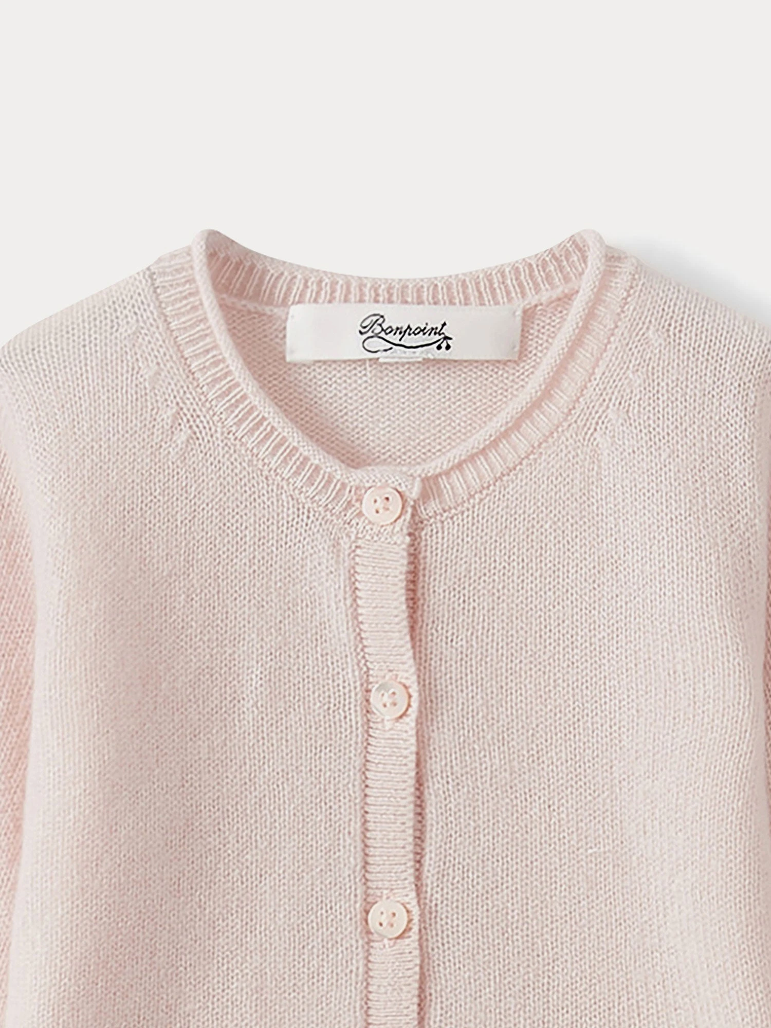 Tout en cachemire, ce cardigan intemporel se pose sur la peau de bébé telle une caresse. Une cerise Bonpoint ton sur ton s’invite sur le bas.