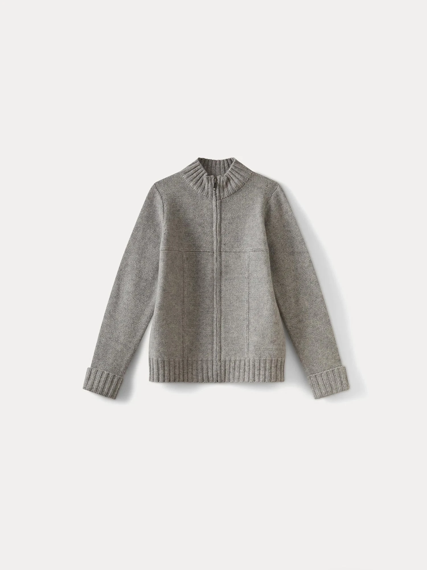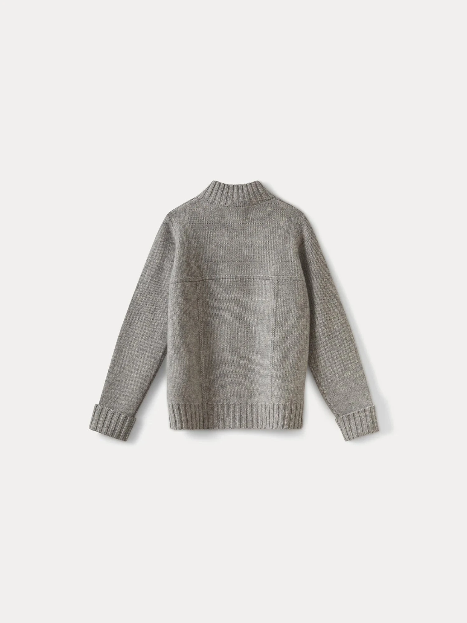 Ce cardigan protègera les garçons du froid avec son col montant à grosses côtes. Entièrement en cachemire, il se distingue par ses lignes en maille fantaisie devant.