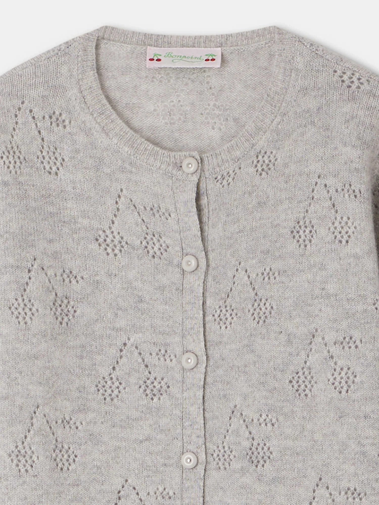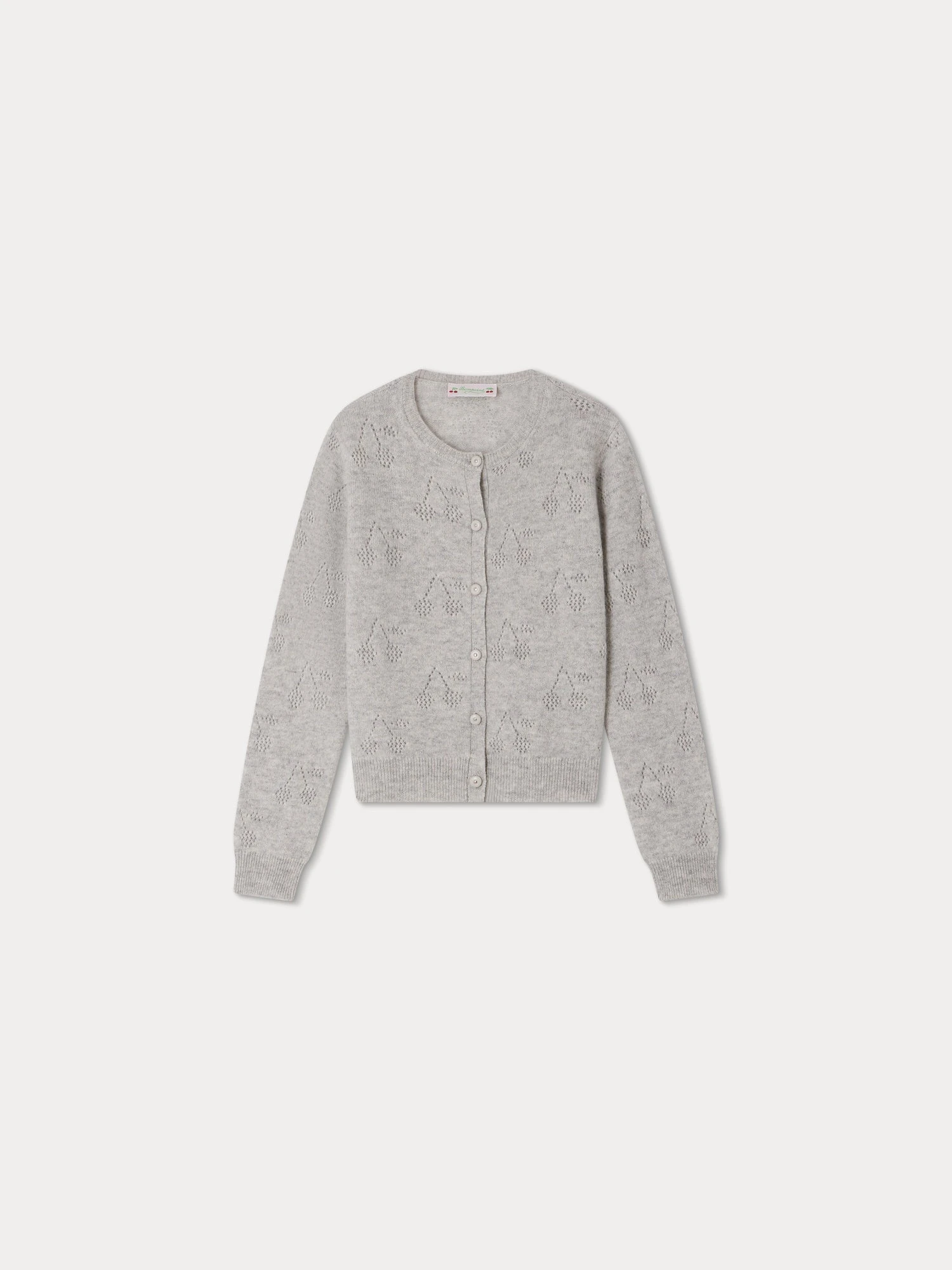 En cachemire extrafin non teint, ce cardigan Thindra pour fille se couvre de motifs cerises ajourés. Il se ferme à l’avant par 6 boutons fantaisie.