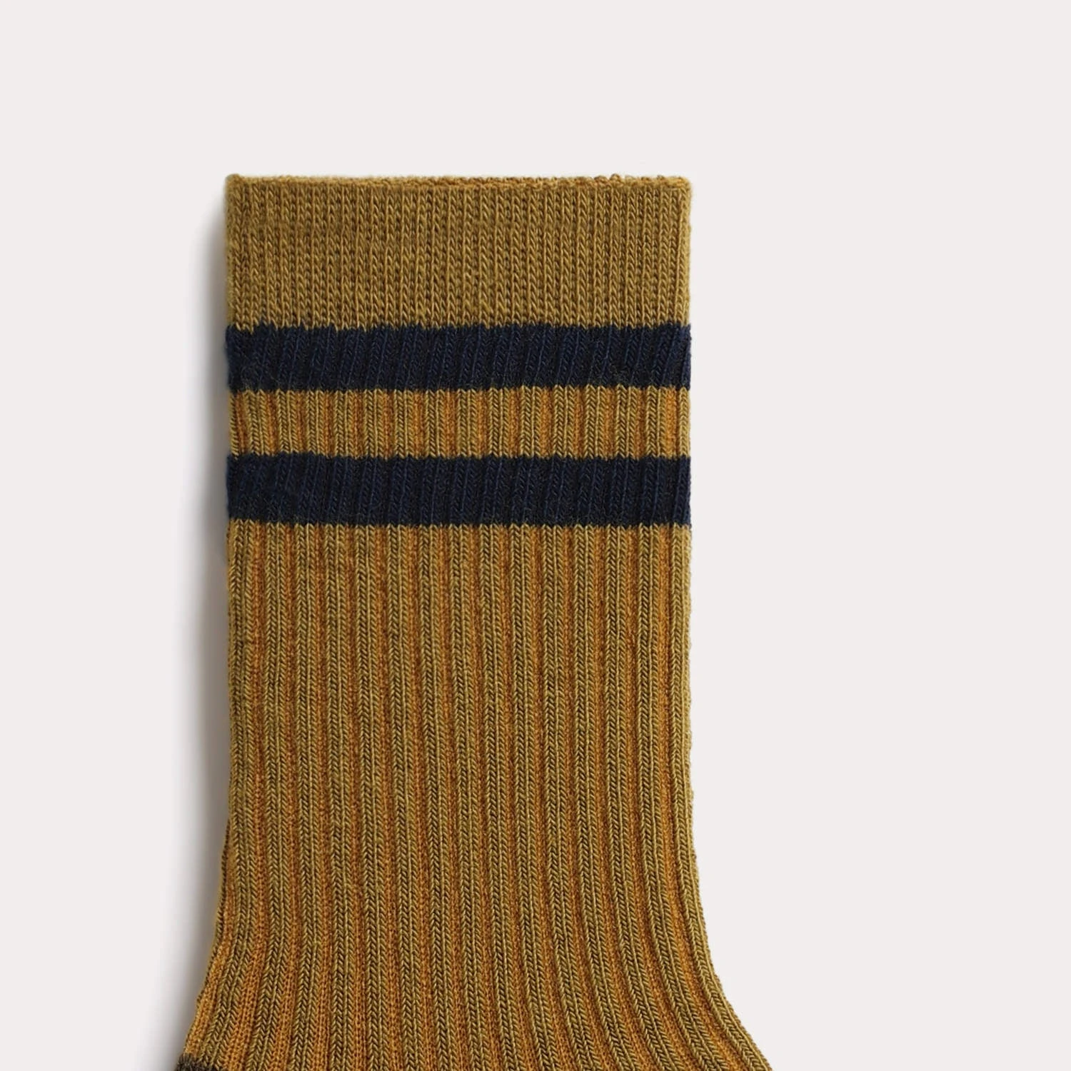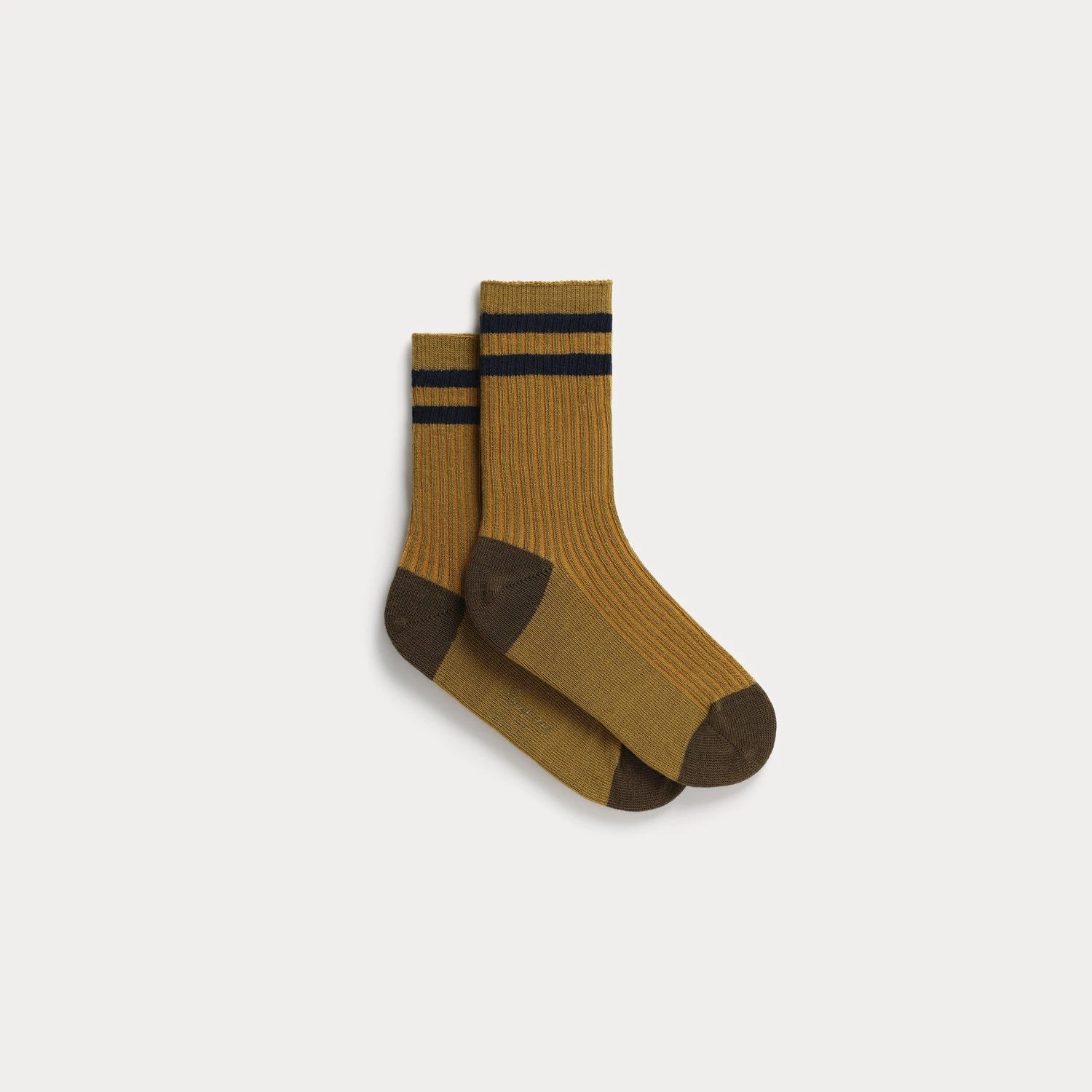Les chaussettes Baderic s’inspirent de l’univers du sport avec leurs deux bandes contrastantes en haut de tige. Des côtes aussi tendance que confortables agrémentent la tige et le haut de pied.