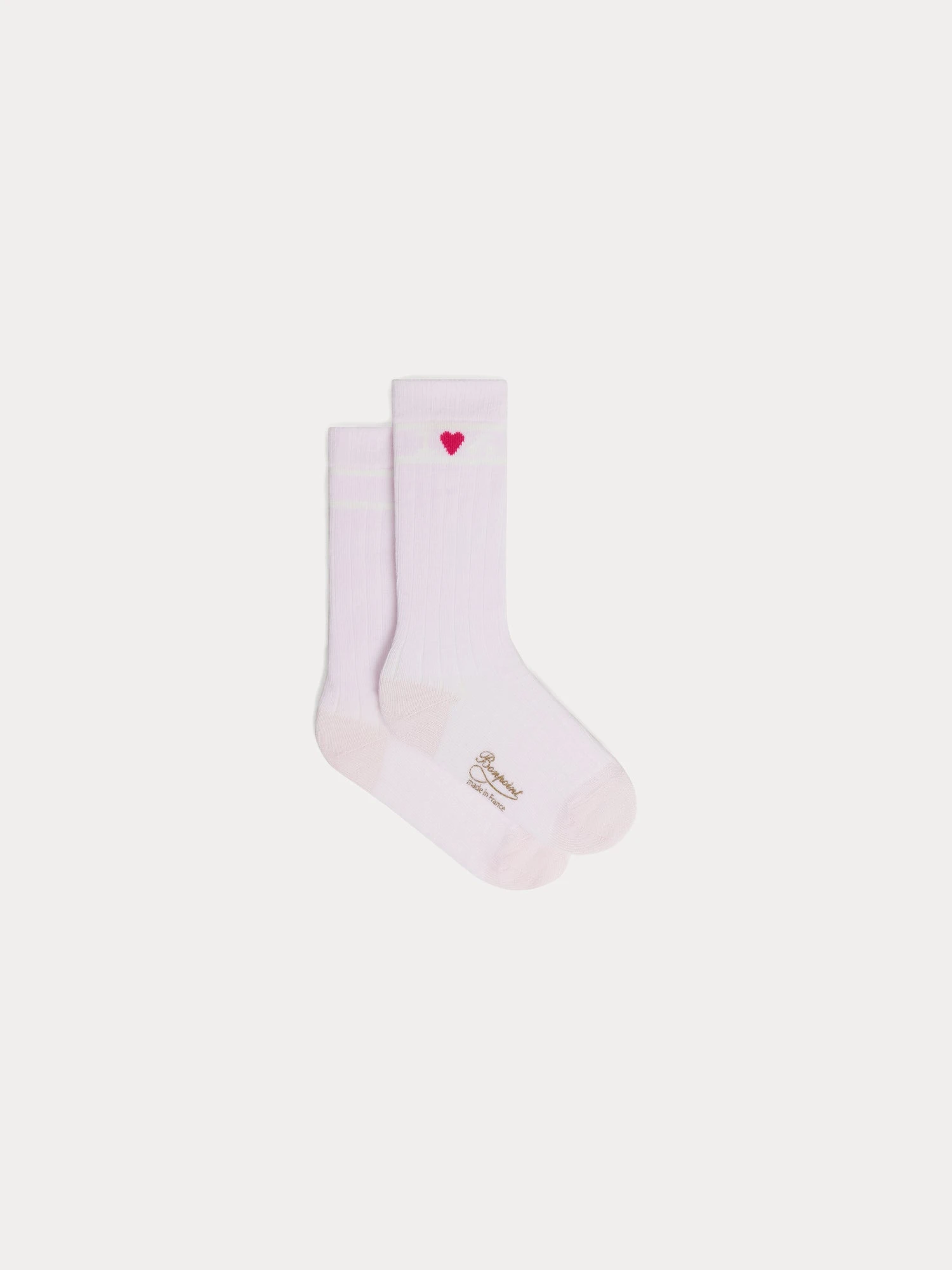 Les chaussettes Filo sauront ravir les filles avec leur teinte douce pleine de charme. La tige à larges côtes est soulignée en haut d’un message emblématique en jacquard.