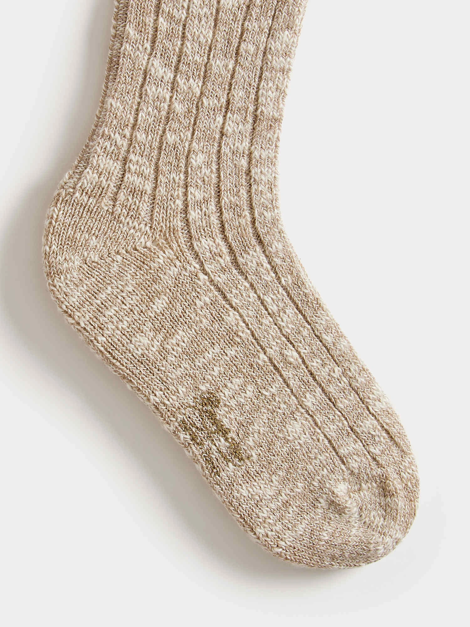 Les chaussettes Tocks gardent les pieds des filles au chaud avec leurs larges côtes très à la mode. Le revers en haut de tige affiche de plus fines côtes.