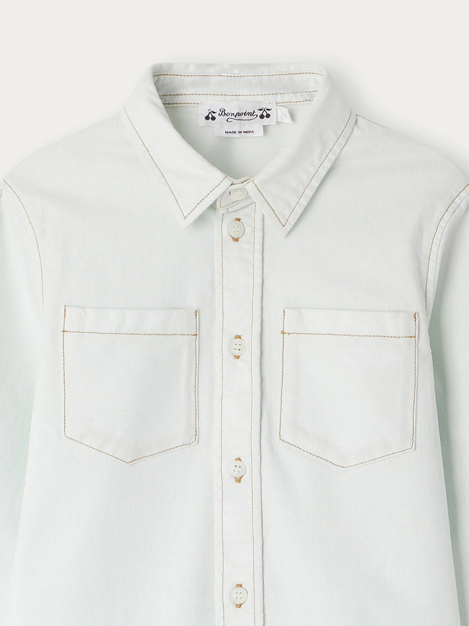 La chemise Altman pour garçon attire les regards grâce à ses coutures contrastantes. Elle est équipée de deux poches plaquées sur la poitrine et arbore un jacron Bonpoint au devant.