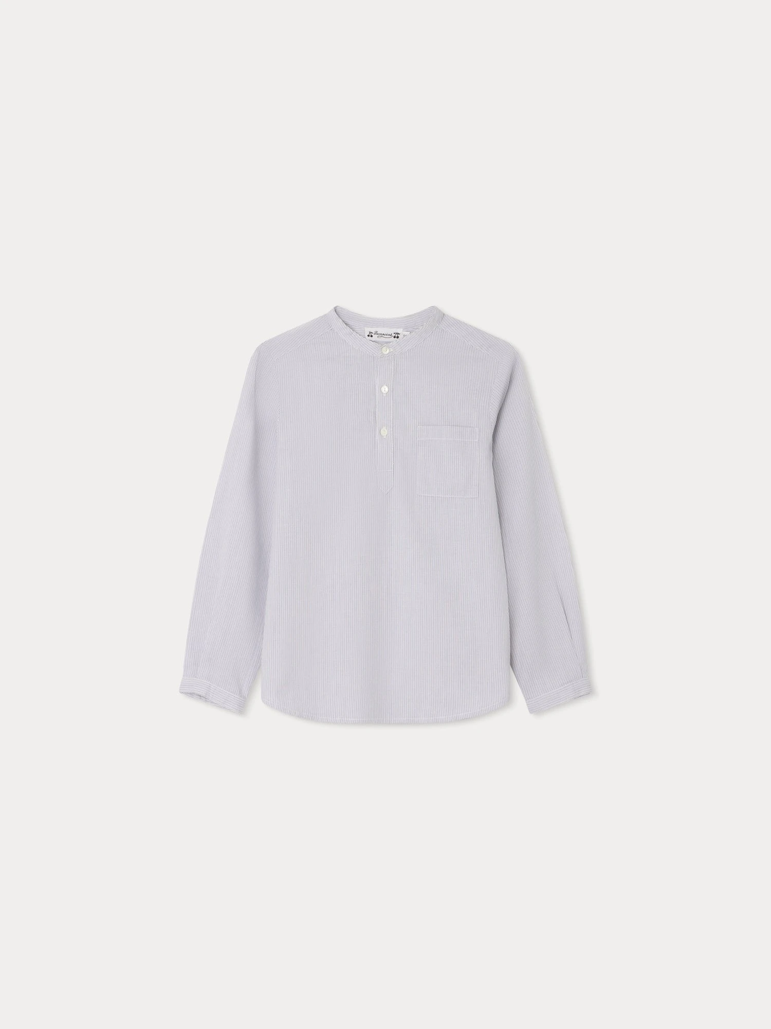 La chemise Claude pour garçon présente une originalité subtile avec son col tunisien et son pli plat au dos. Ce modèle à manches longues est en coton issu de l’agriculture biologique.