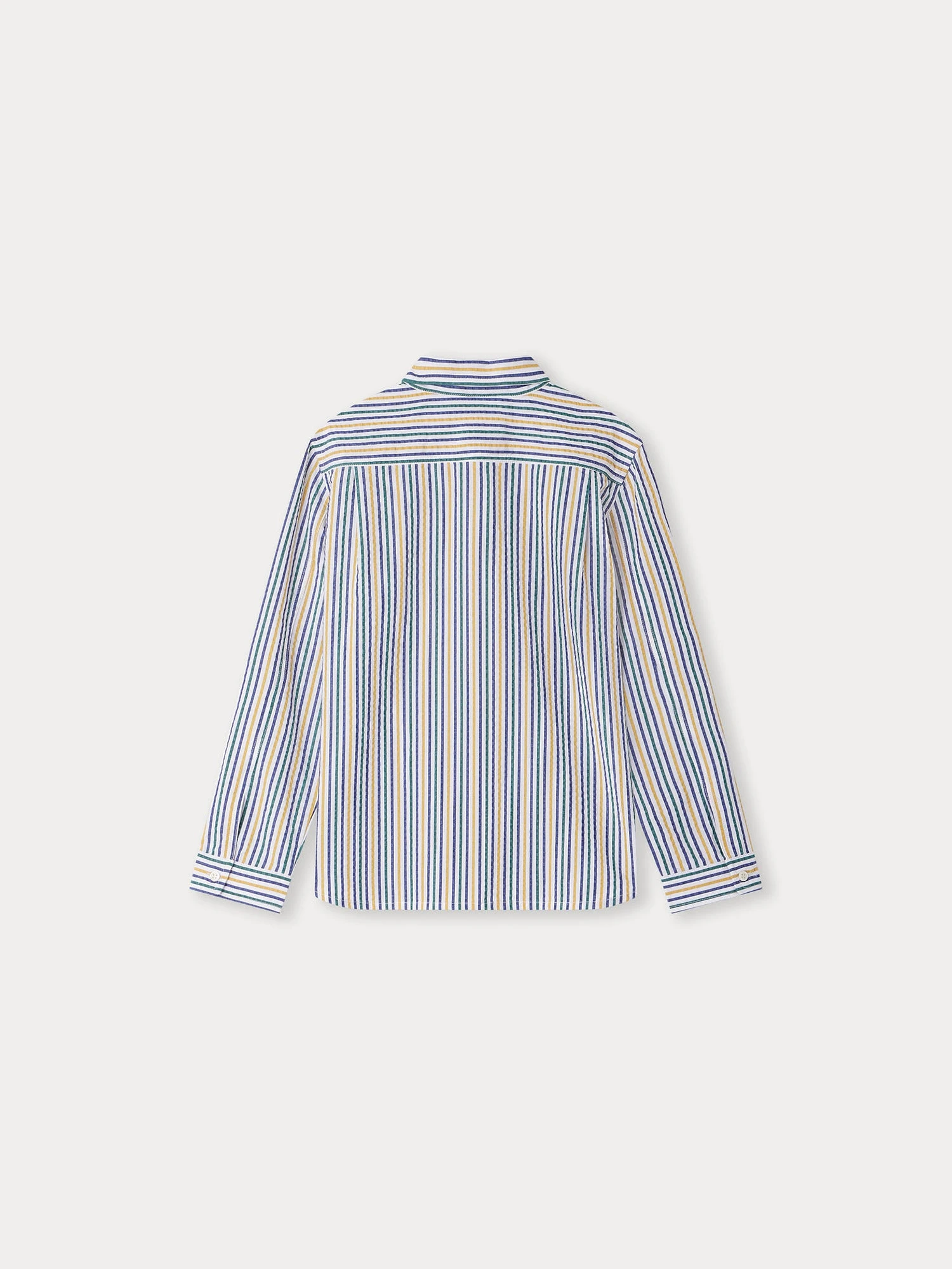 Cette chemise à manches longues pour garçon Tangui apporte du pep’s à la tenue avec ses rayures verticales multicolores. Confectionnée en coton, elle se présente dans une coupe droite.