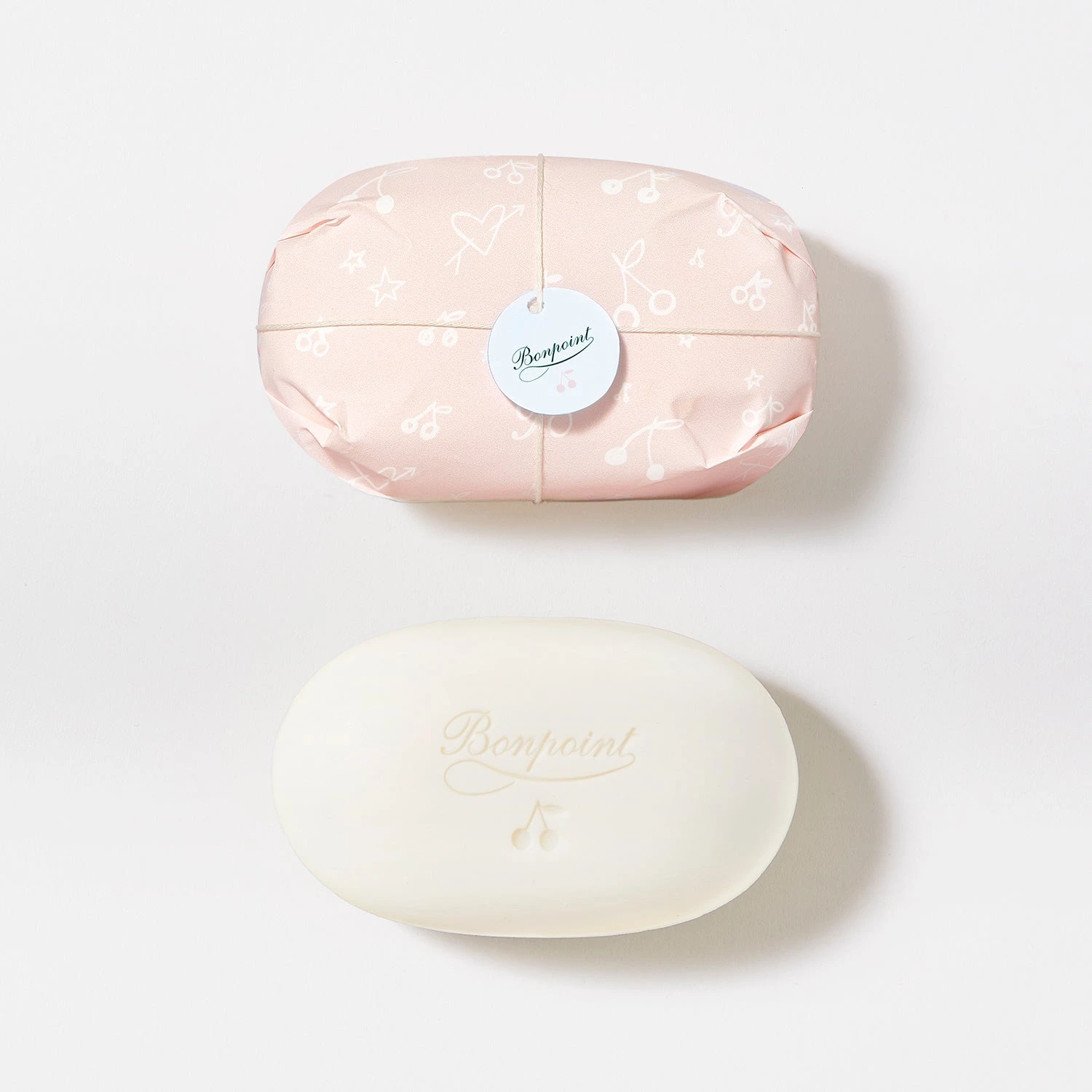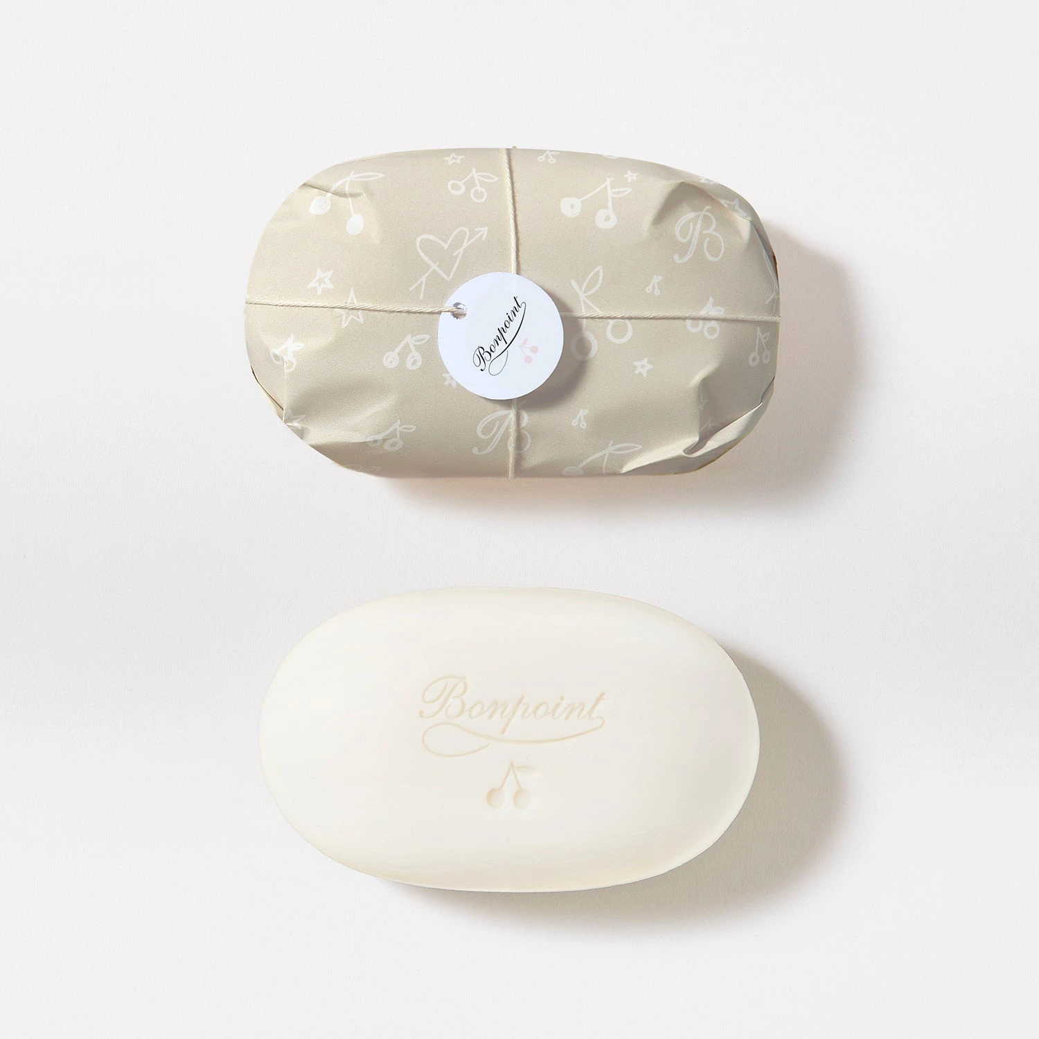 - 2 pains de savon de 150 grammes, emballés à la main dans du papier exclusif Bonpoint Kaki ou Rose.