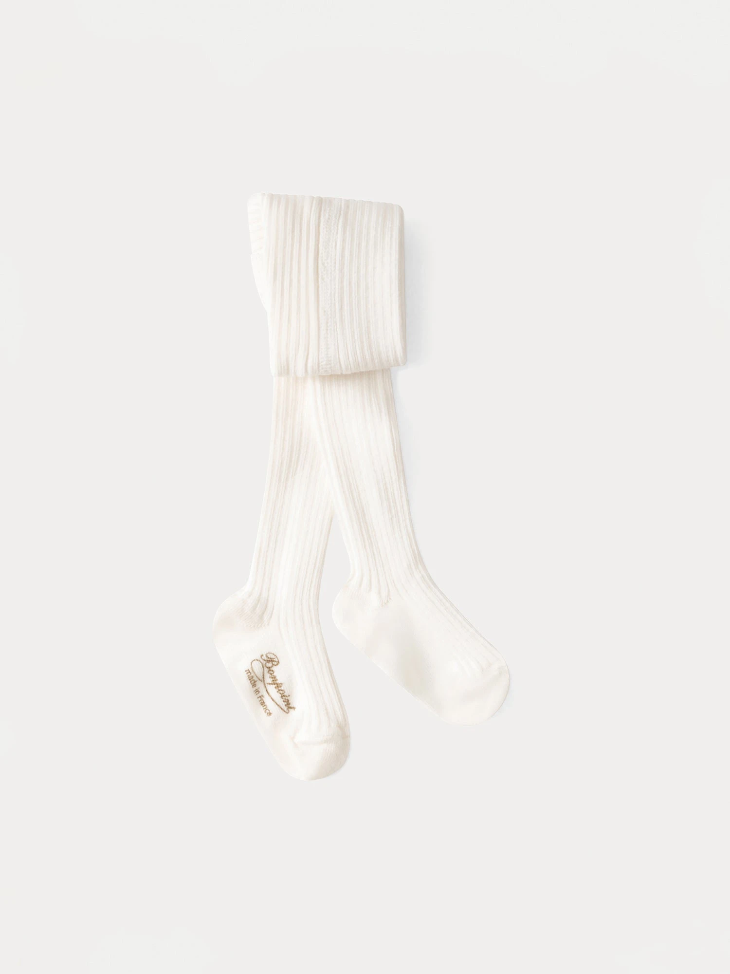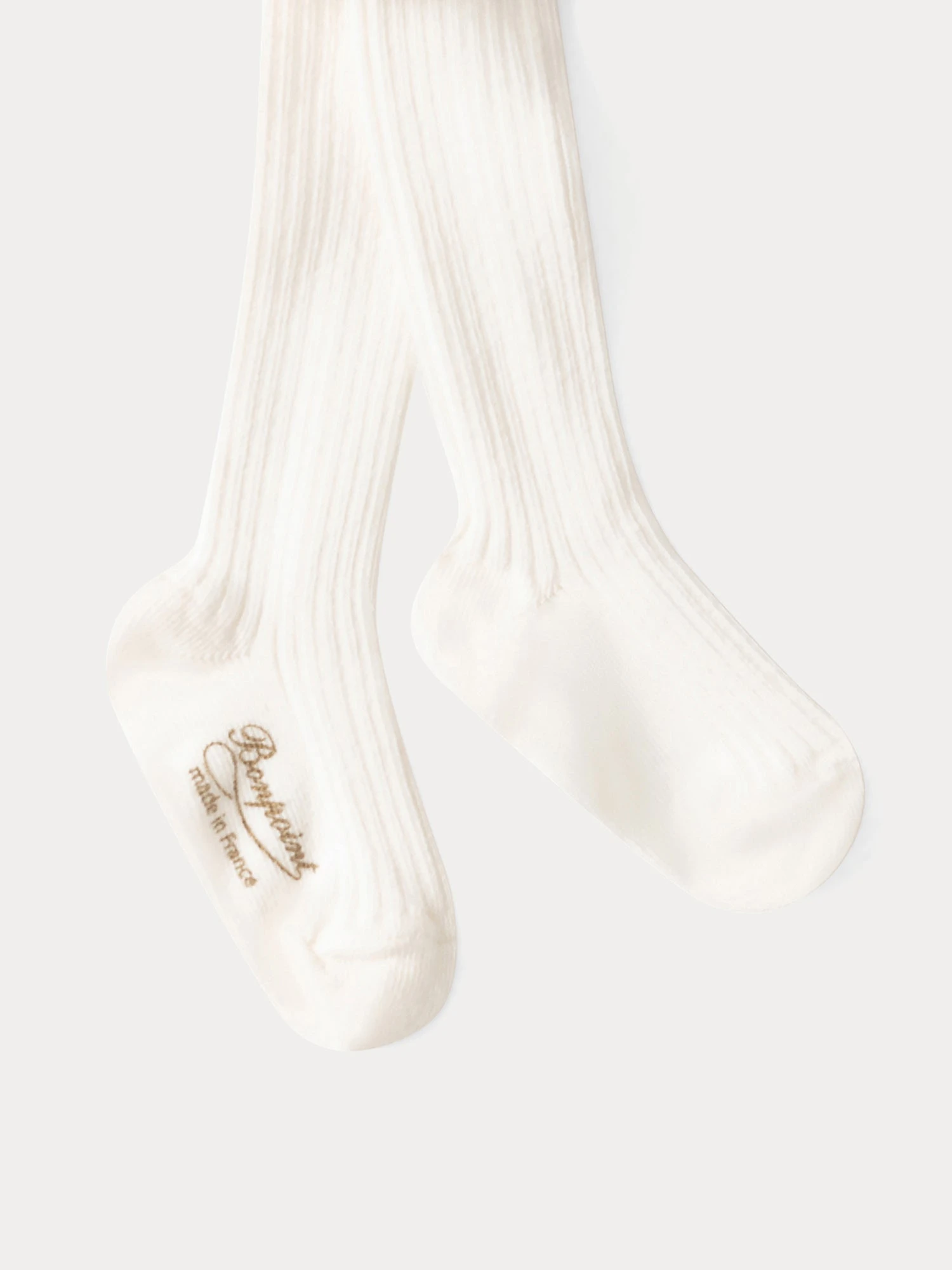 Modèle emblématique Bonpoint, ce collant pour bébé est idéal en cadeau de naissance. Sa maille extensible arbore des côtes très élégantes.
