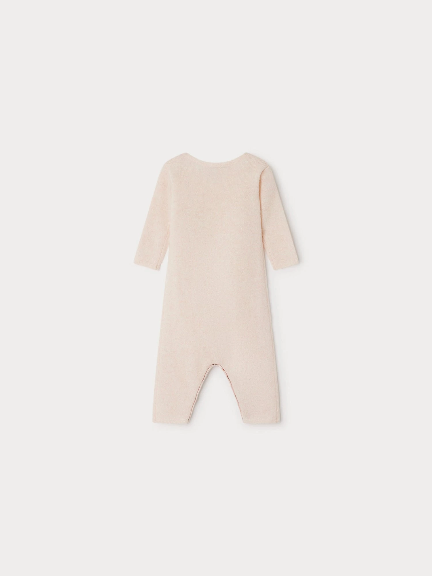 En jersey de cachemire à porter à même la peau, cette combinaison Cielo pour bébé s’orne d’un logo Bonpoint discret brodé ton sur ton sur la poitrine. Les emmanchures américaines et l’entrejambe pressionné facilitent l’enfilage.