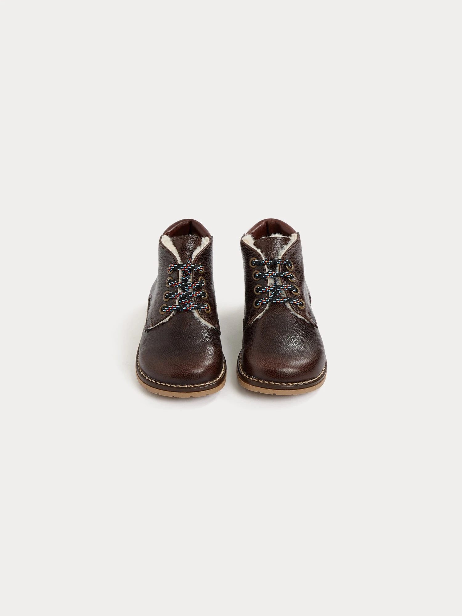 Fermées par des lacets, ces derbies premier pas Diego pour bébé sont fourrées pour plus de confort et de chaleur. Le contrefort s’orne de la signature Bonpoint en relief.