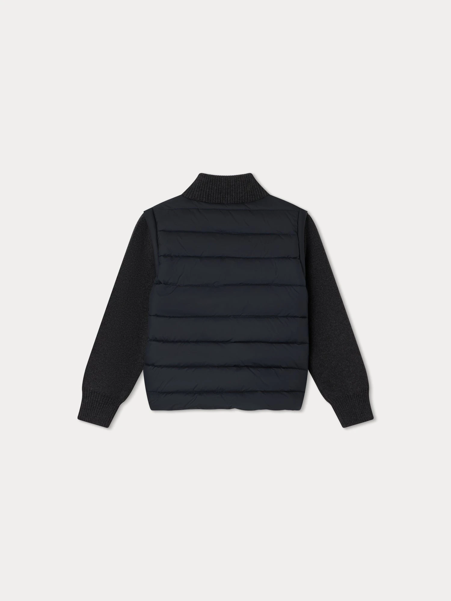 Cette doudoune pour garçon Chase se démarque par son mix de matières. Les manches et le col montant sont en tricot. Matelassé, le reste du modèle se compose de fibres recyclées.