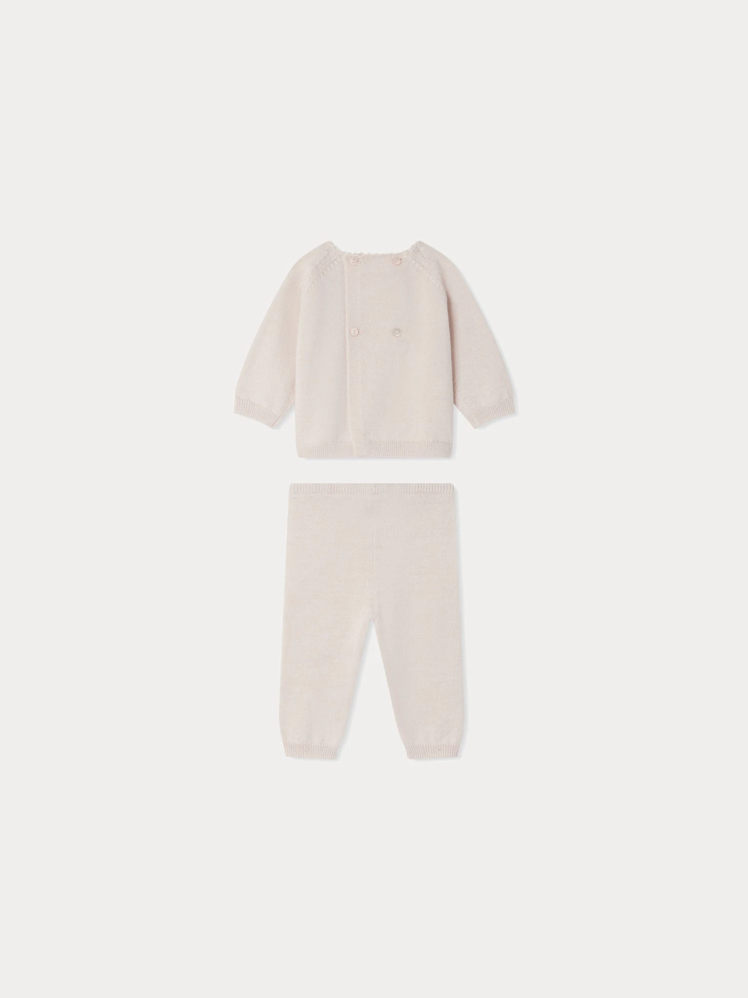 Cet ensemble pour bébé Bamba est confectionné dans une maille douce et résistante, gage de chaleur et de confort. Il se démarque par ses finitions festonnées au col.