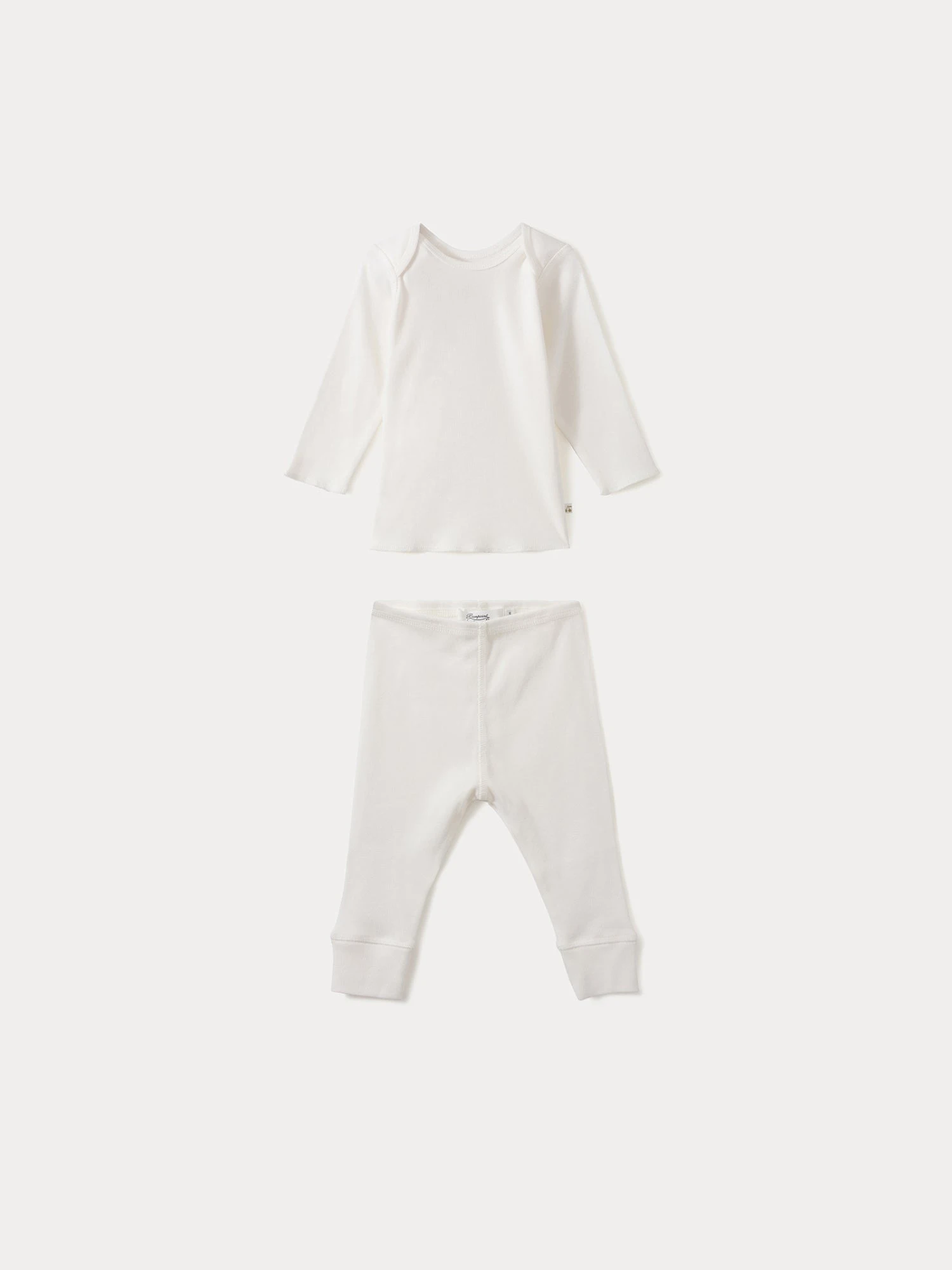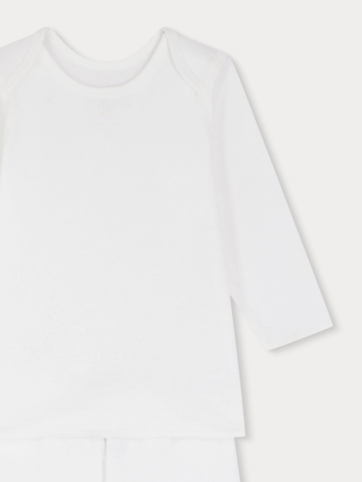 On retrouve tout le raffinement et l’épure stylistique de Bonpoint dans cet ensemble deux pièces. Son tissu en coton biologique écru se pose sur la peau comme une caresse et protège du froid. Idéal à porter dès la naissance.
