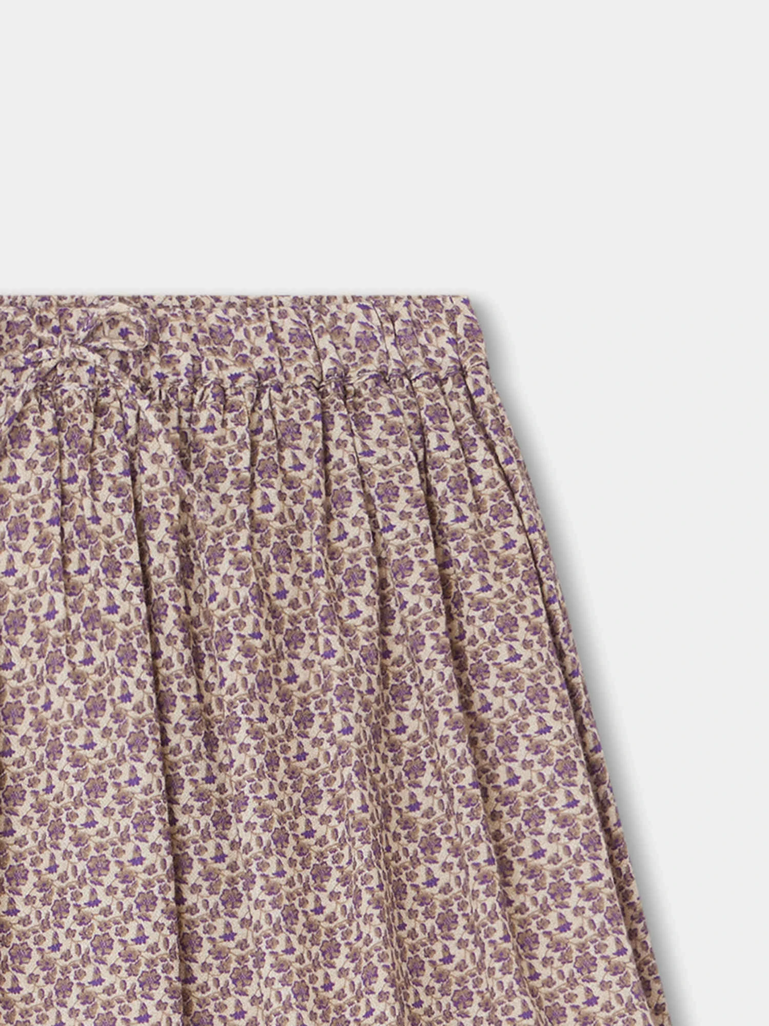 Cette jupe pour fille Daisy séduit les filles avec son motif à petites fleurs et son large volant à la base. Elle se présente dans une coupe évasée mi-longue.