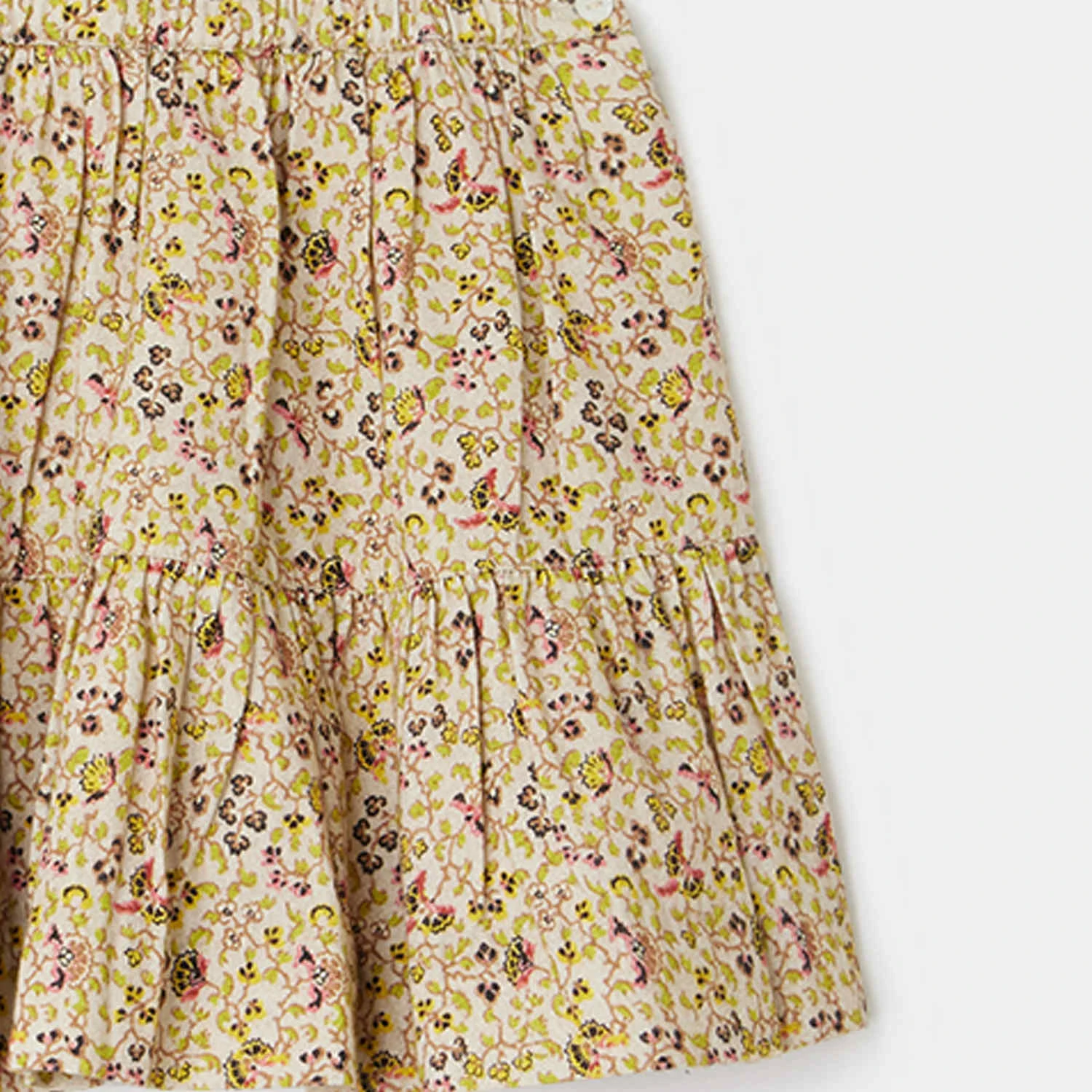 Coupée dans un tissu à l’imprimé floral, cette jupe Paloma pour fille s’orne de deux volants superposés. Elle dispose d’une confortable taille élastiquée et se ferme sur le côté avec un bouton en nacre.