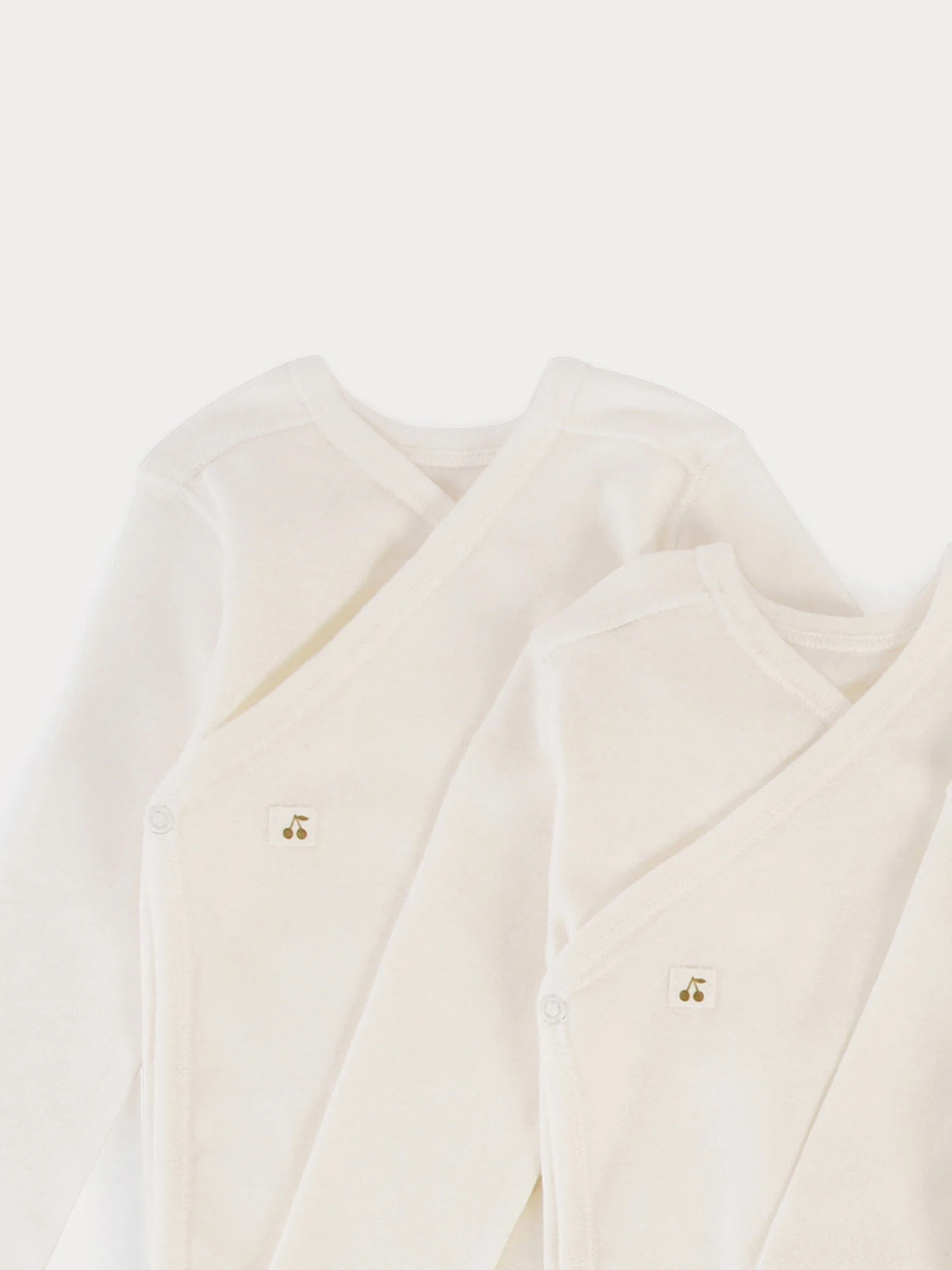 Rien de tel que ces bodys cache-cœurs pour maintenir votre bébé au chaud dès la naissance. Leur composition en coton biologique écru enveloppe la peau de douceur. On les porte avec un pantalon et des chaussons en crochet.