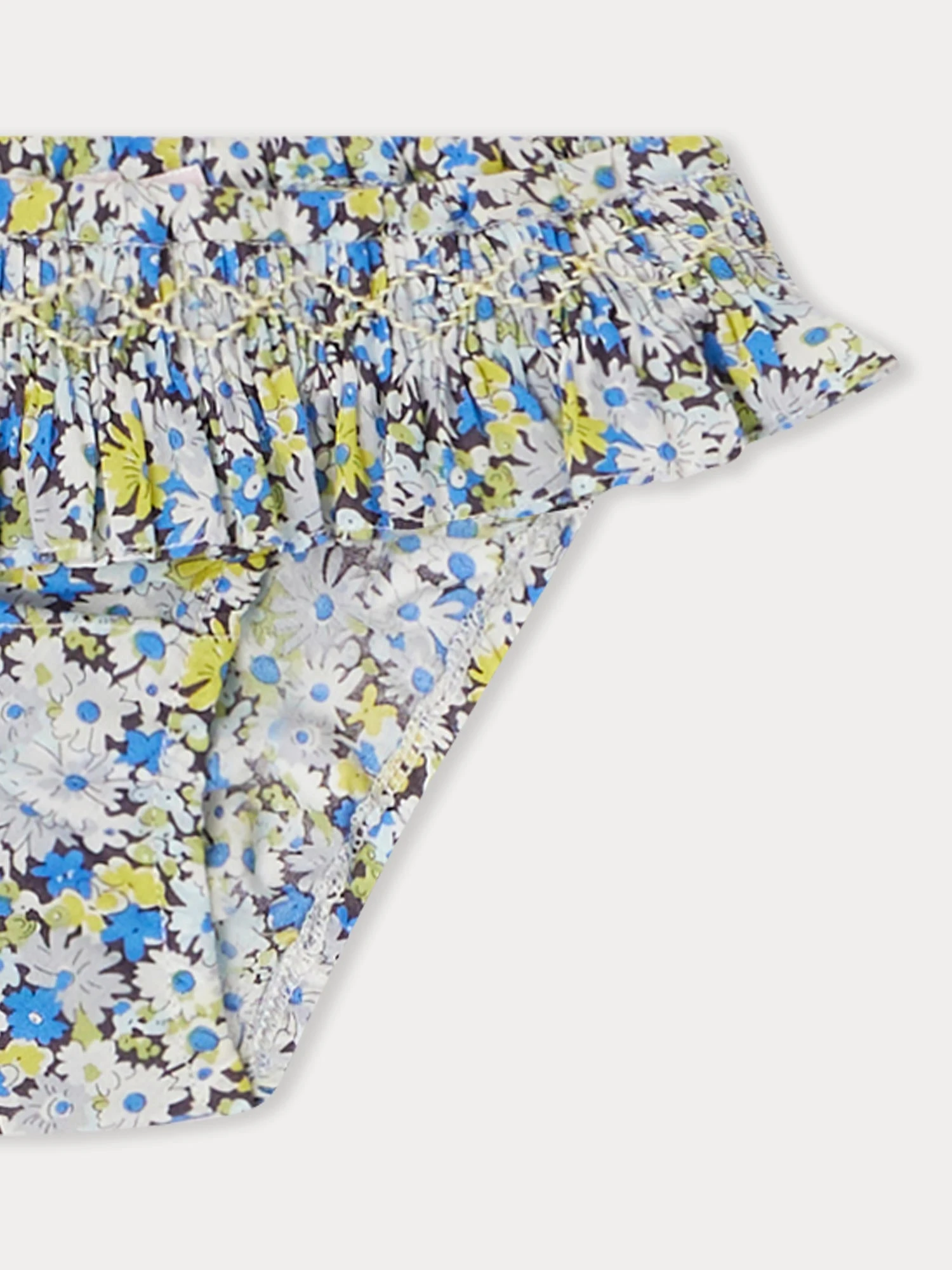 Avec son volant brodé et smocké à la main, ce maillot de bain Sardaigne pour bébé illustre le savoir-faire de la Maison Bonpoint. En tissu Liberty biologique, il est élastiqué à la taille et aux cuisses.