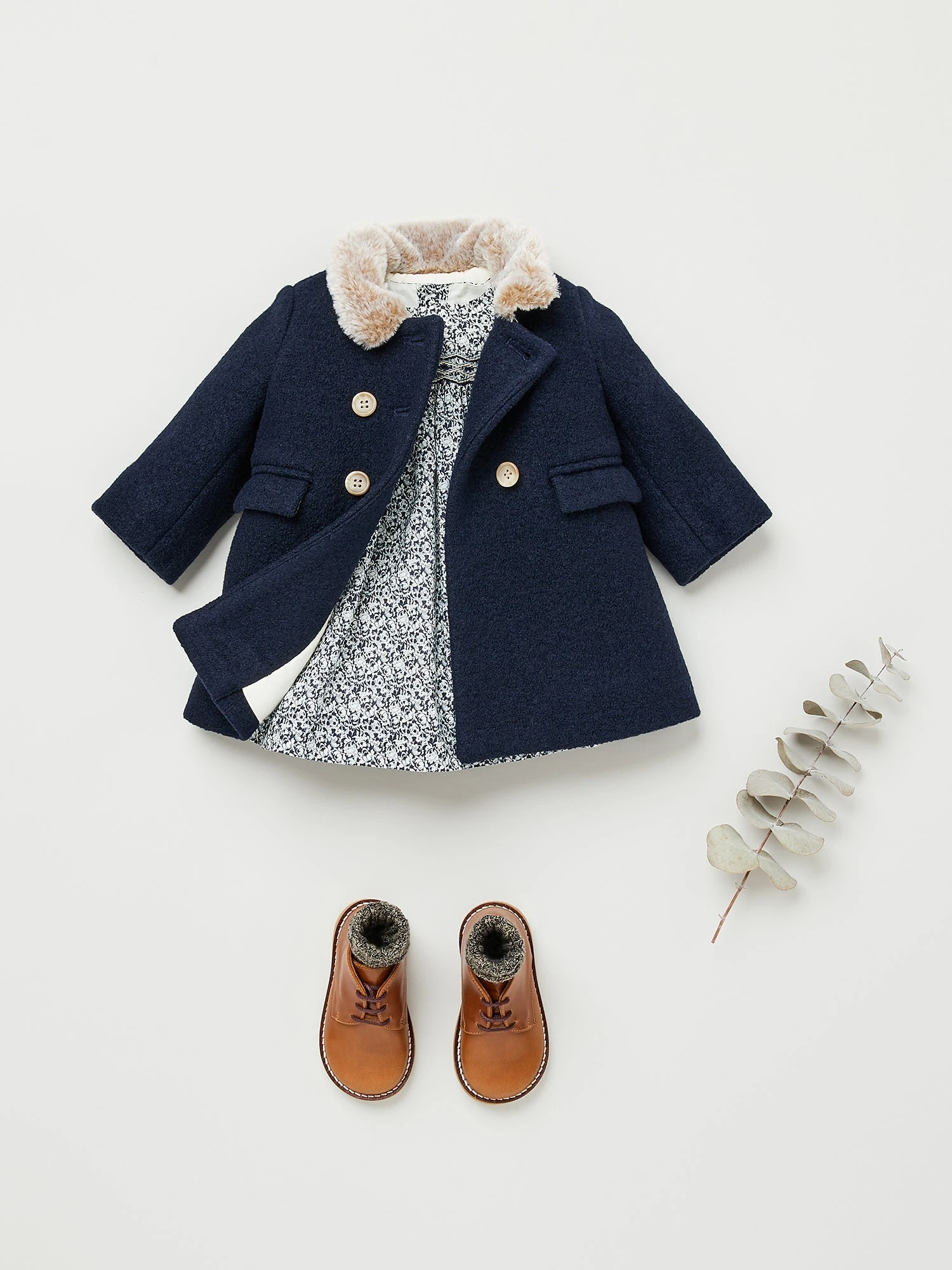 Réalisé en laine bouillie et doté d’un col en fausse fourrure, ce manteau à double boutonnage Moka pour bébé tient les tout-petits au chaud. Il est entièrement doublé.