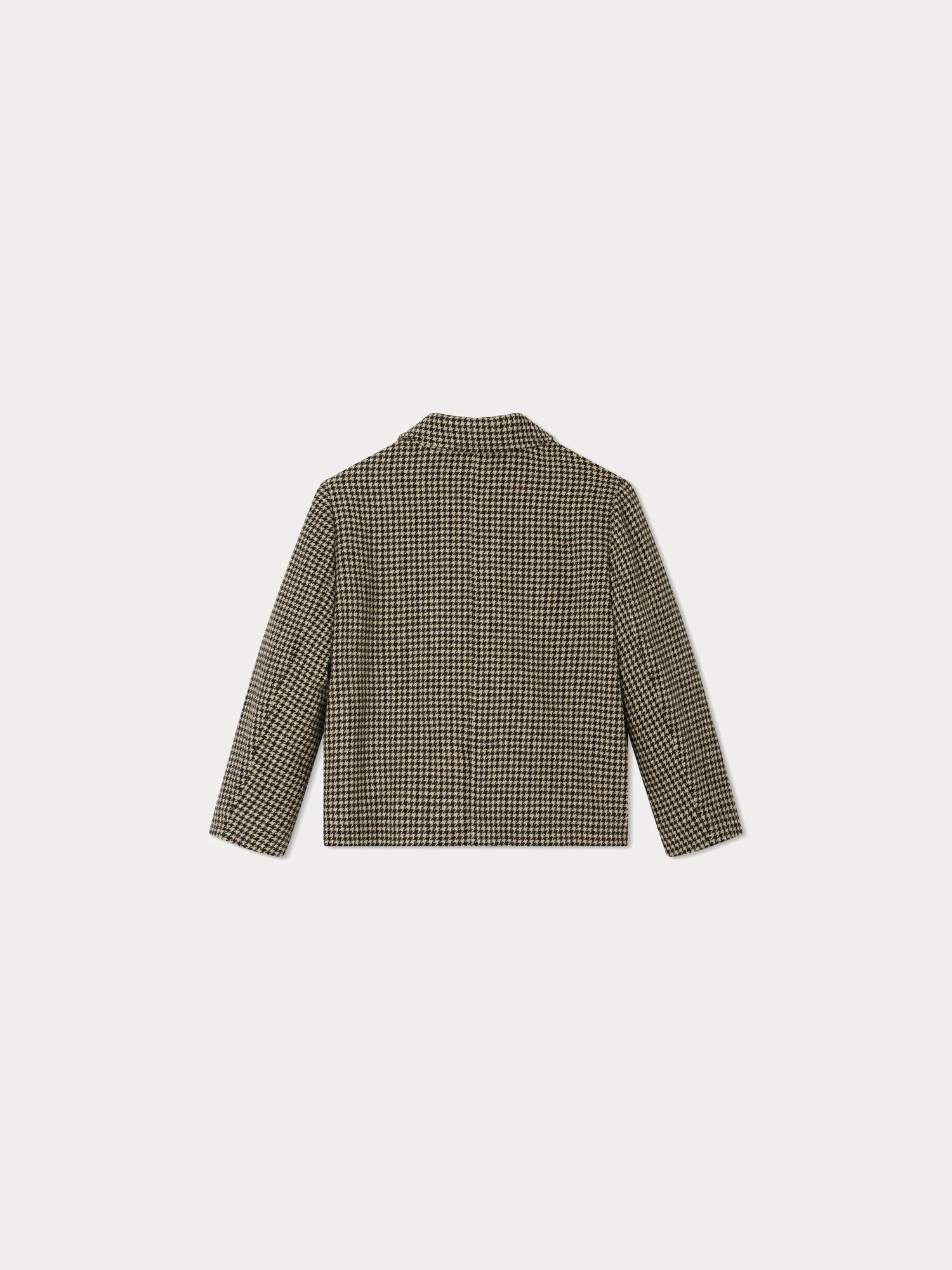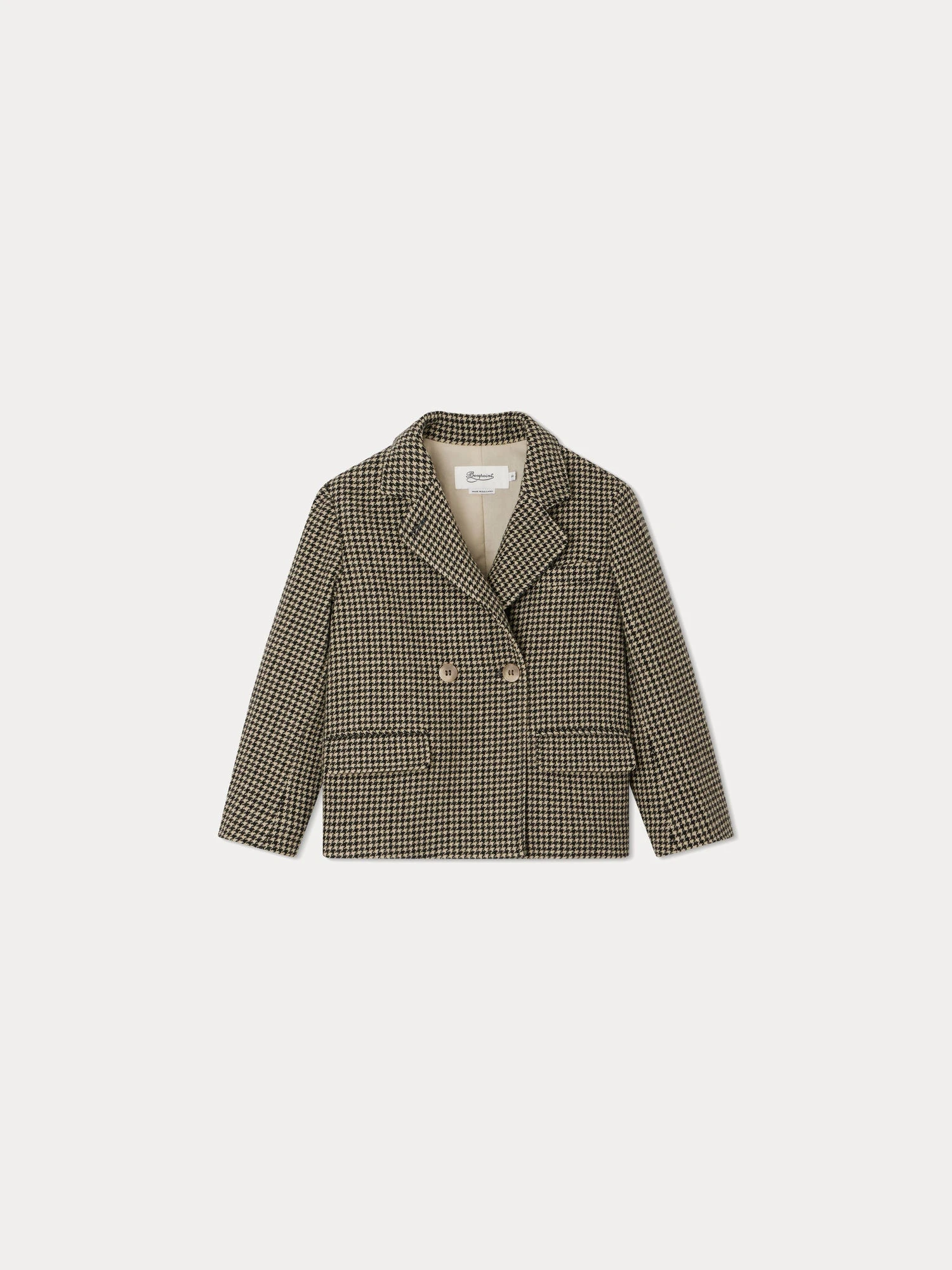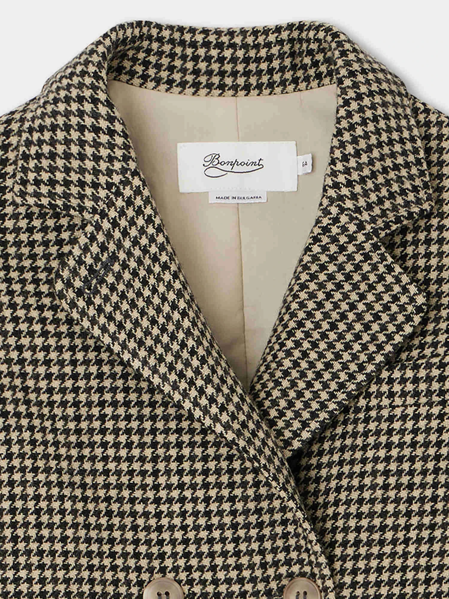 Le manteau Tiya pour fille revisite l’intemporel motif pied-de-poule. Ce modèle à manches longues s’inspire des classiques du tailoring avec son col à revers cranté.