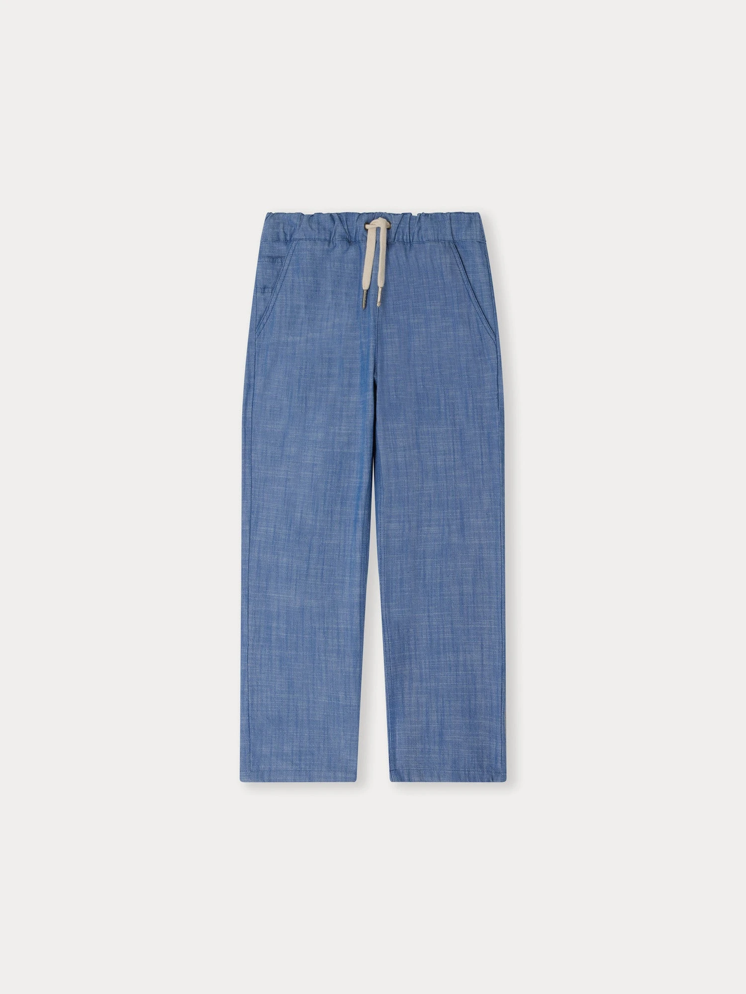 En chambray de coton biologique, ce pantalon élastiqué Connell pour garçon se distingue par ses détails contrastants. Signé d’une étiquette Bonpoint au dos, il adopte une coupe droite élégante.