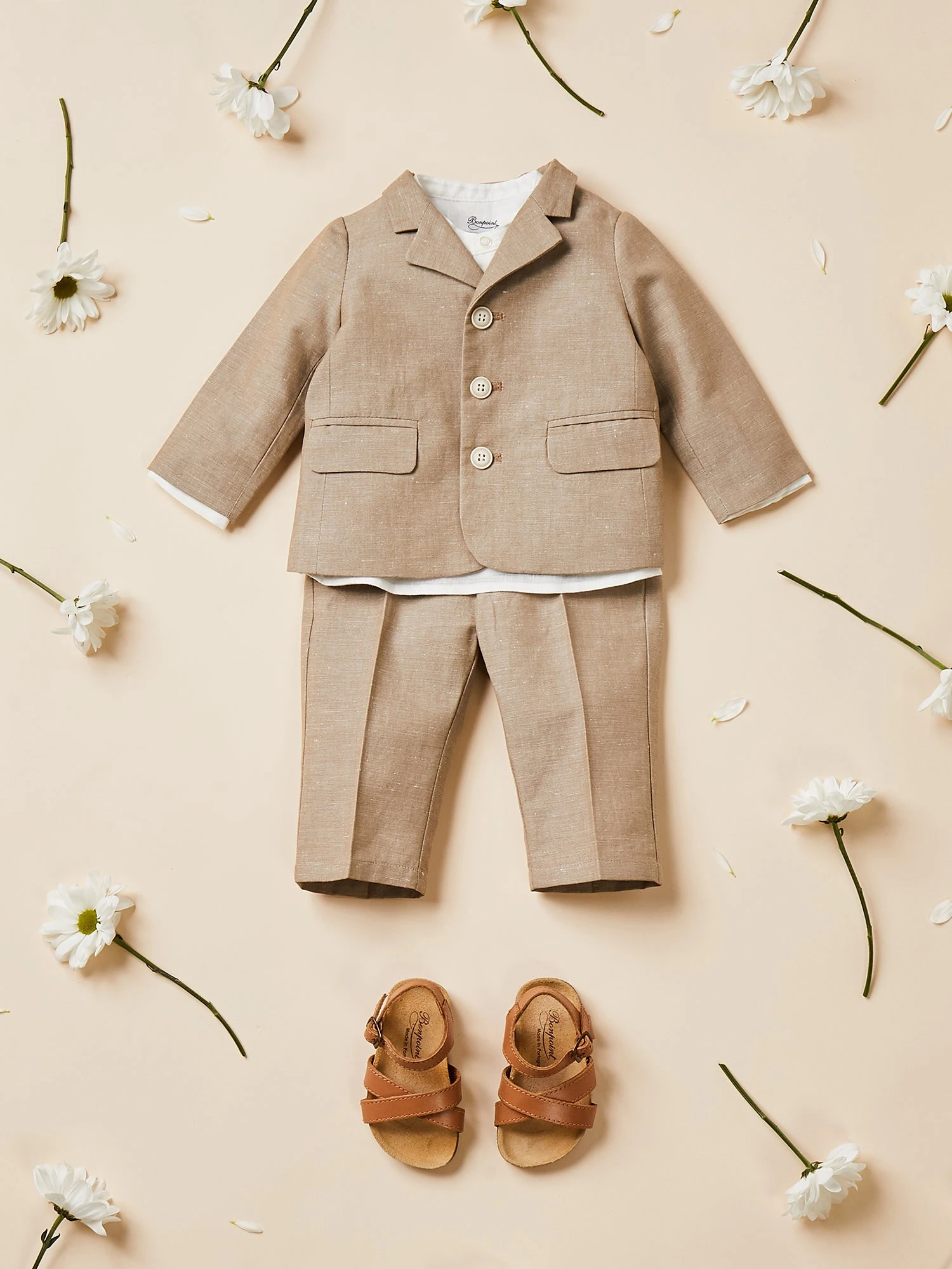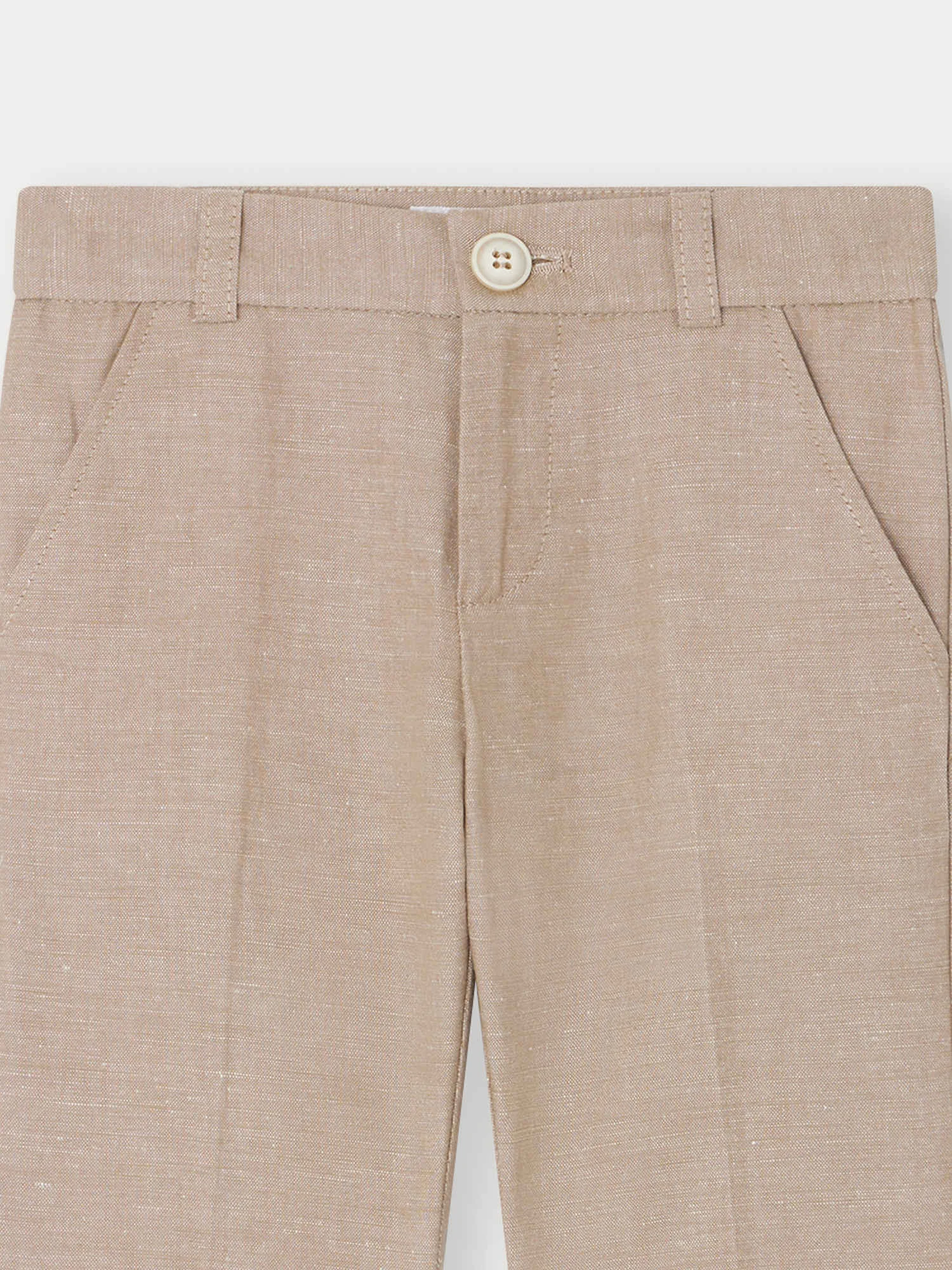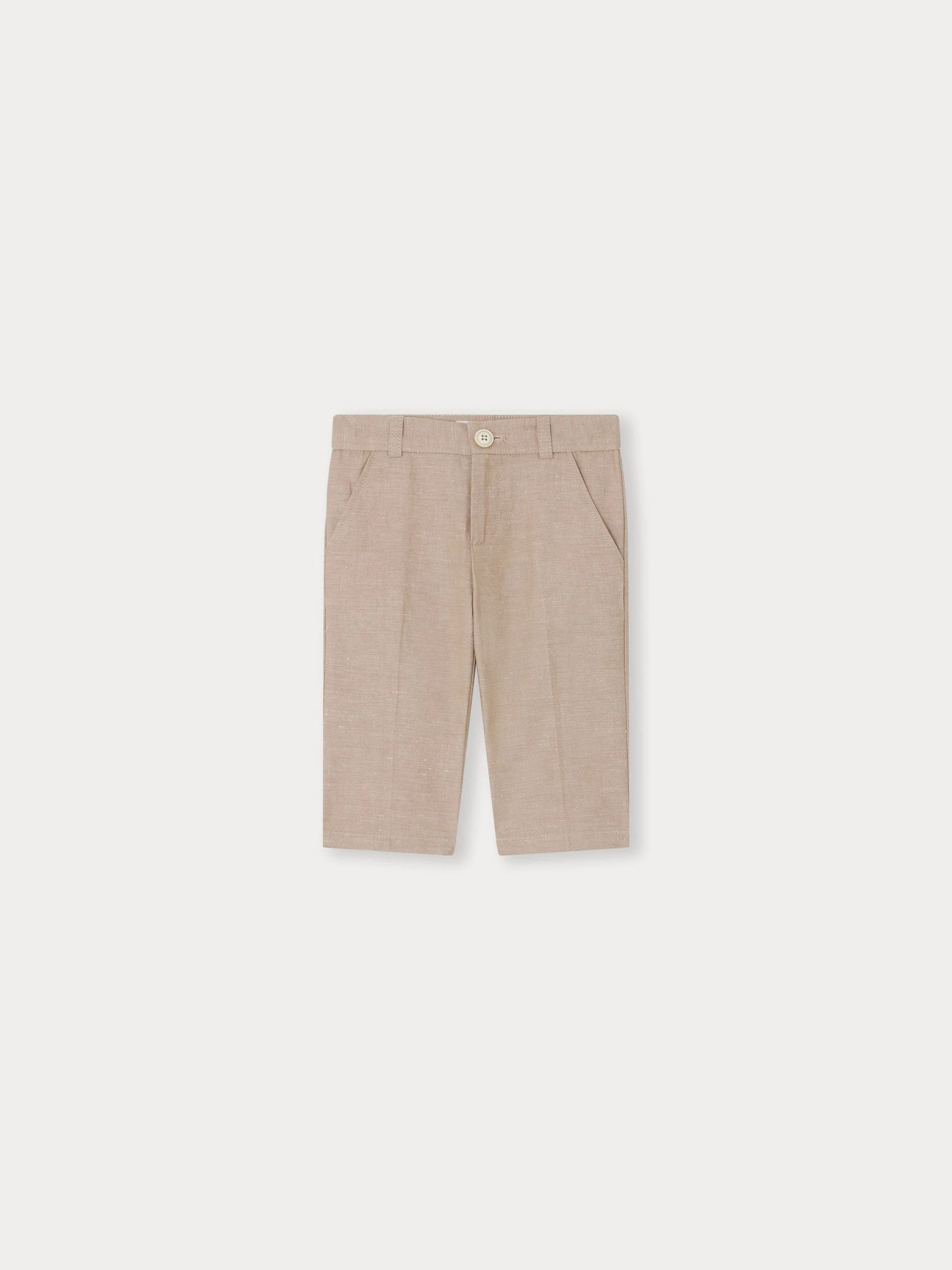 Ce pantalon pour bébé Decibel est un indispensable pour composer une tenue élégante et légère. Il comporte deux poches italiennes à l’avant et une poche passepoilée au dos.