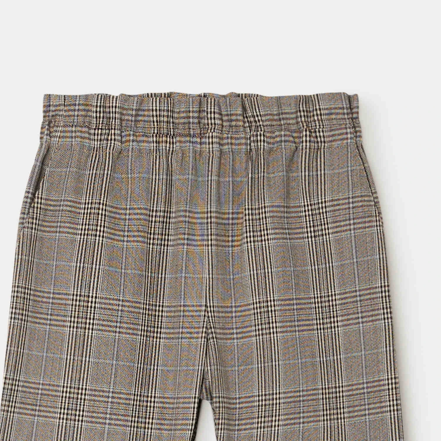 Le pantalon Fétiche donne un style rétro à la tenue des filles avec son imprimé à petits carreaux. La taille s’assortit d’une finition à crête volantée pleine d’élégance.