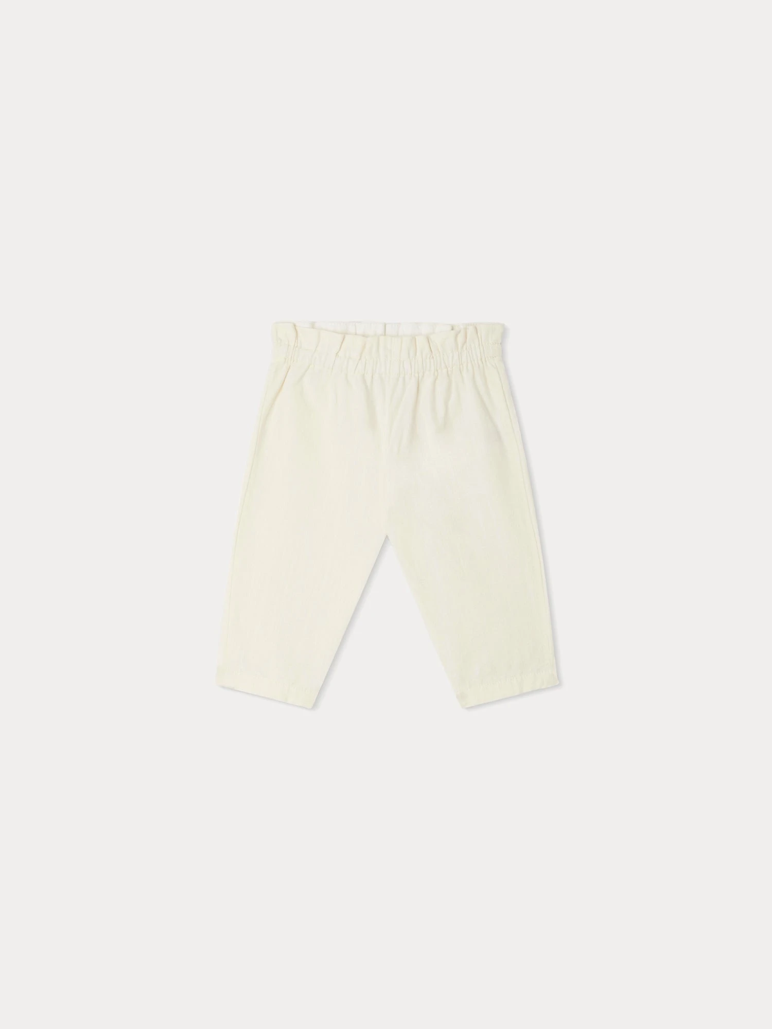 Ce pantalon pour fille Luciole mise sur le confort et l’élégance avec sa taille élastiquée froncée. Le bas de jambe est large pour un enfilage aisé et un confort optimal.