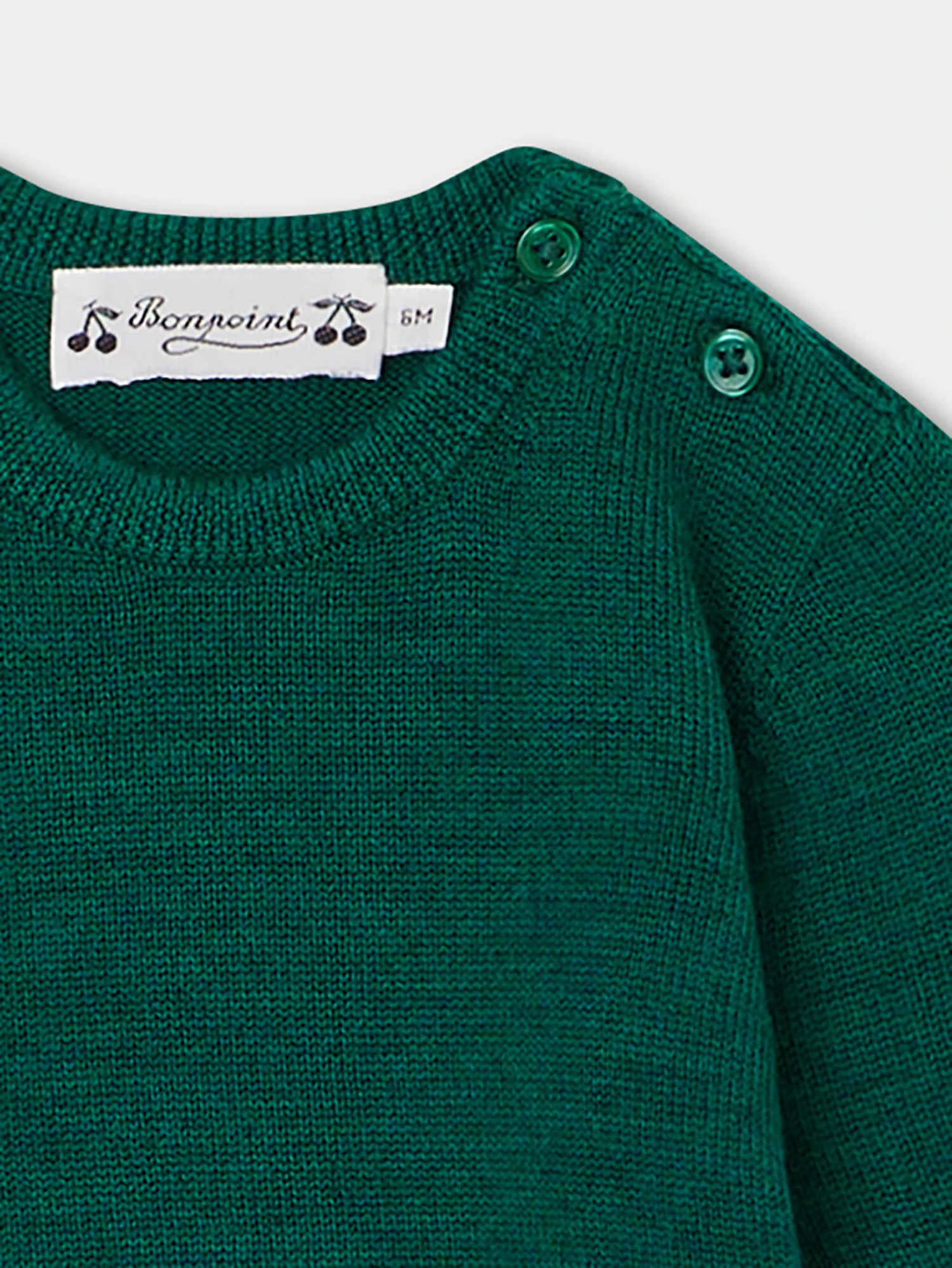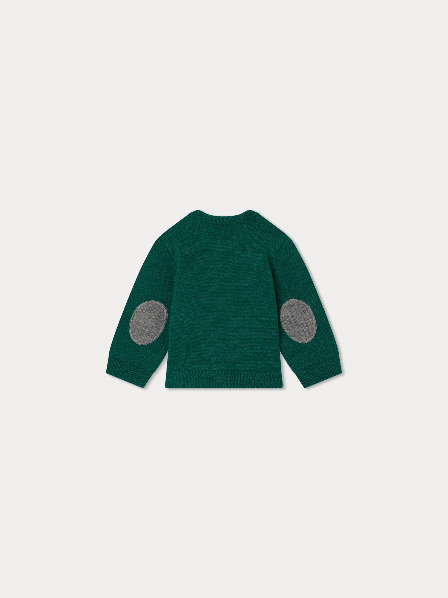 En laine unie, le pull à manches longues Almire pour bébé se boutonne sur l’épaule. Ce modèle iconique Bonpoint se distingue par ses coudières contrastantes en tricot.