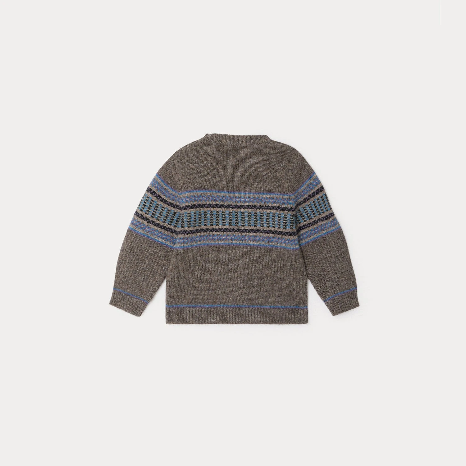 Réalisé dans une laine mérinos bien chaude, le pull Bassiano pour bébé est unique avec ses motifs jacquard multicolores devant et au dos. La patte de boutonnage sur l’épaule facilite l’enfilage.