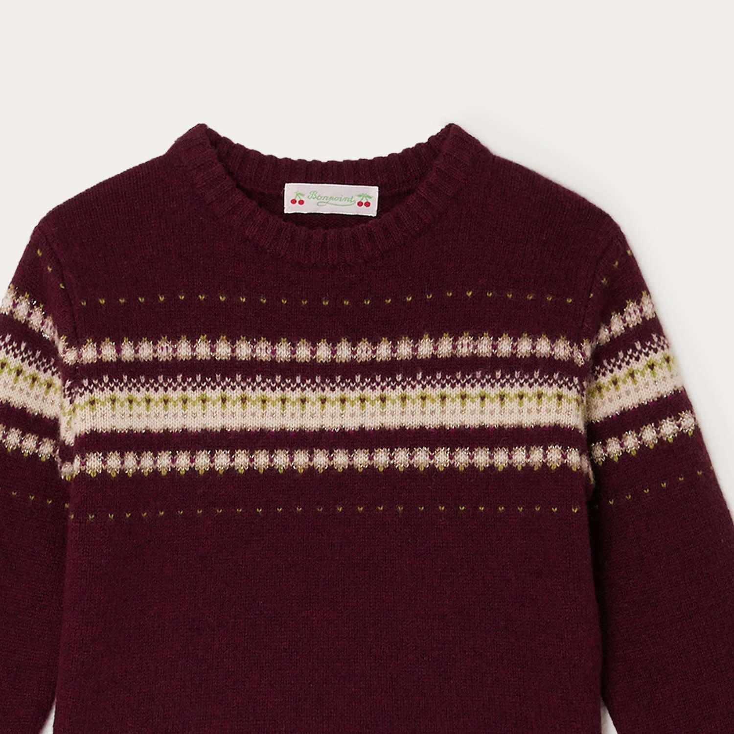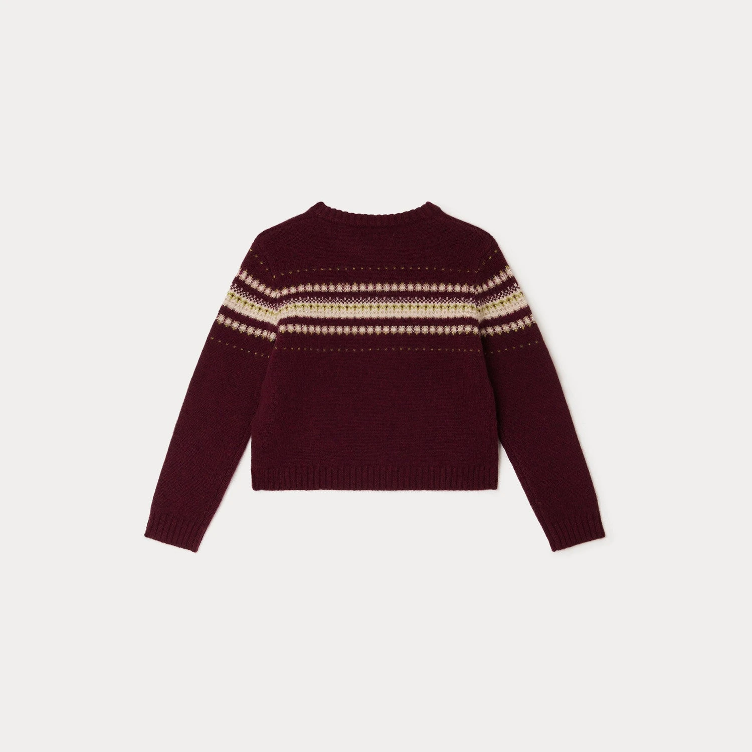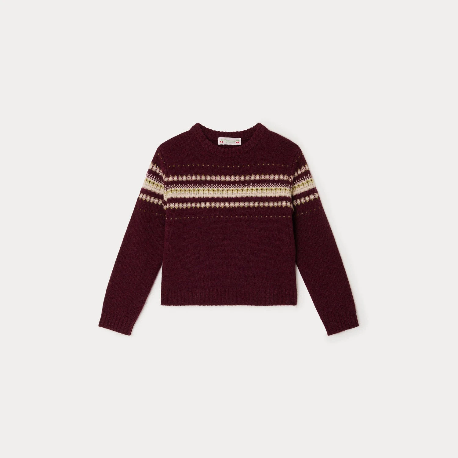 Ce pull pour fille Branda se pare d’un motif original sous forme de frise. Pour plus d’éclat, il est rehaussé de fils métallisés.