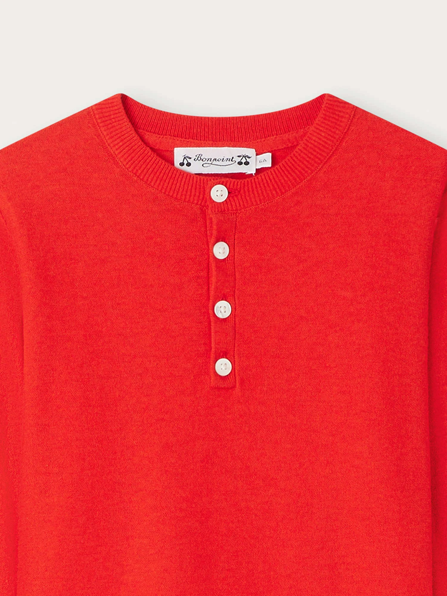 Le pull Channing pour garçon, pourvu d’un col rond et de manches longues, se distingue par son coloris élégant et sa discrète finition métallisée. Sa patte boutonnée facilite l’enfilage.