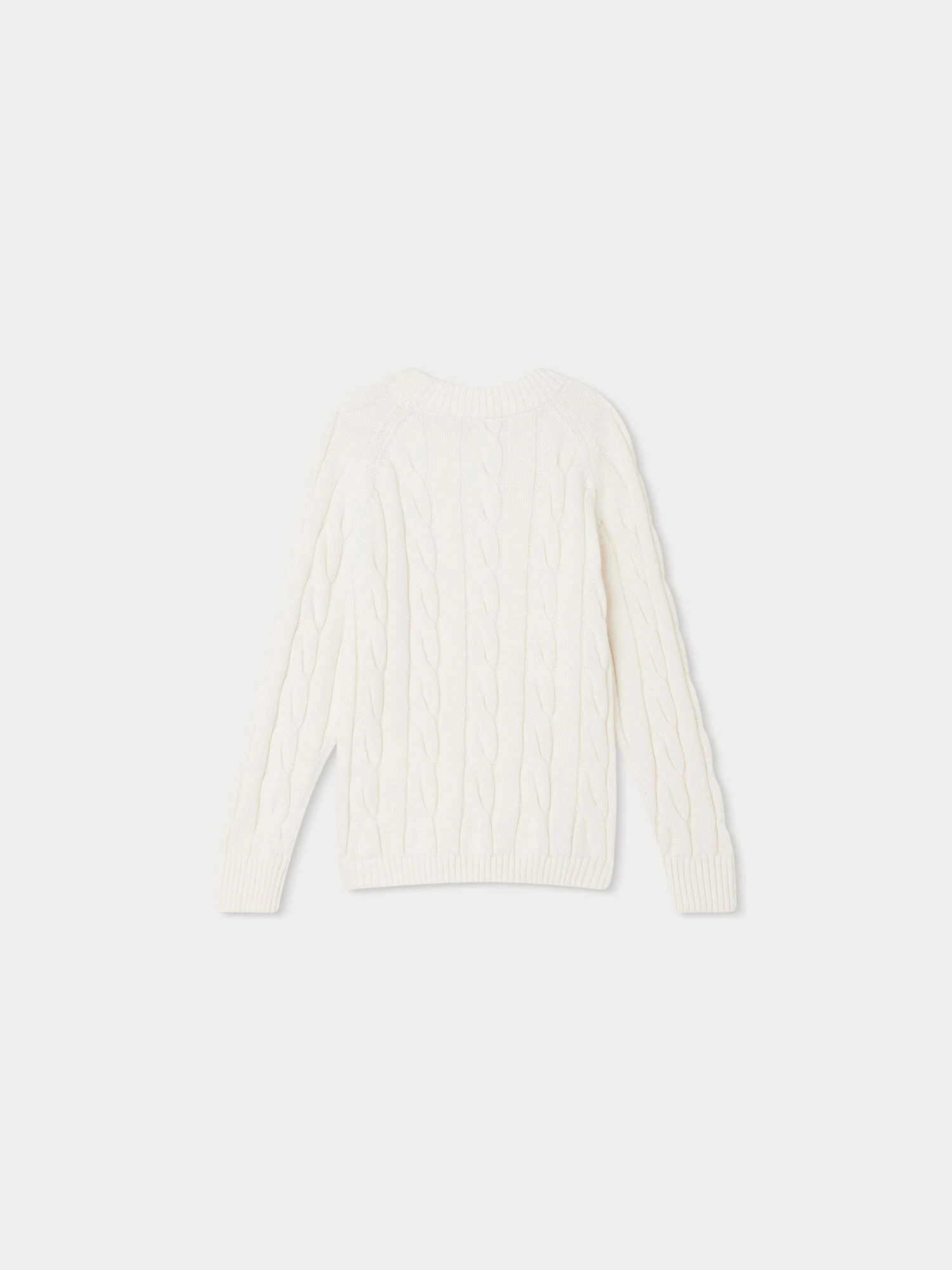 En coton et cachemire, ce pull Dalton pour fille s’orne de côtes et de torsades plates sur l’ensemble. Une petite broderie cerise contrastante signe ce modèle de demi-saison.