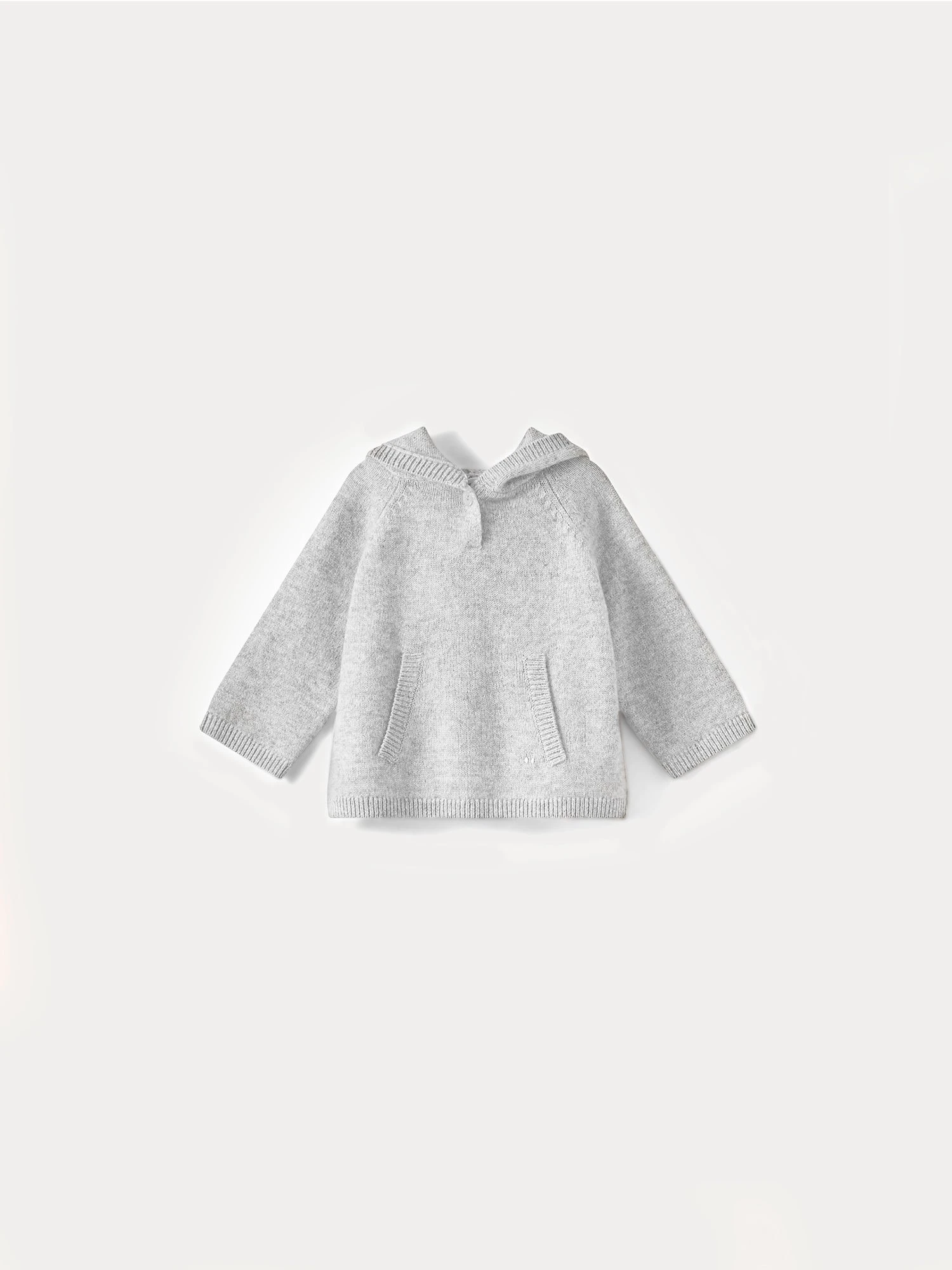 Ce pull-over pour bébé en cachemire doux est un modèle emblématique de la Maison. Il possède une large capuche fermée par un bouton au col.