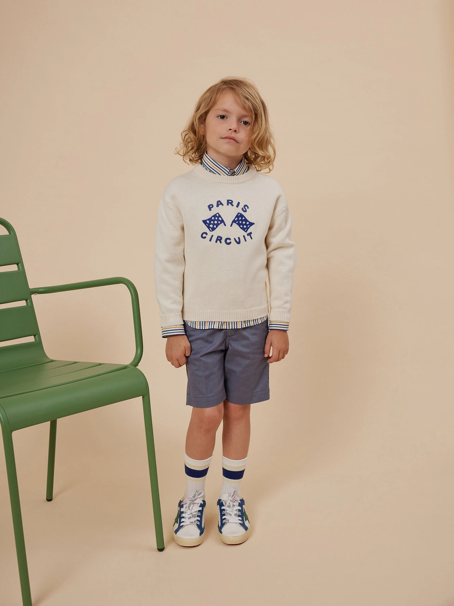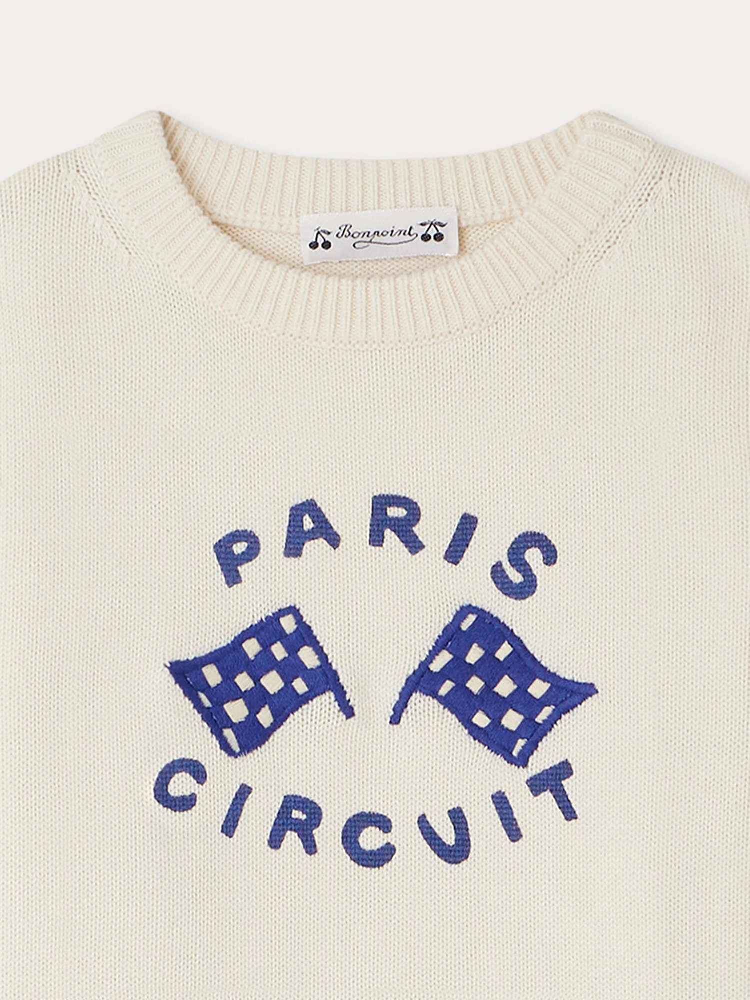 Ce pull pour garçon Fabion séduit les amateurs de voitures de course avec son motif sur le devant. Il comporte des emmanchures basses pour un confort optimal.