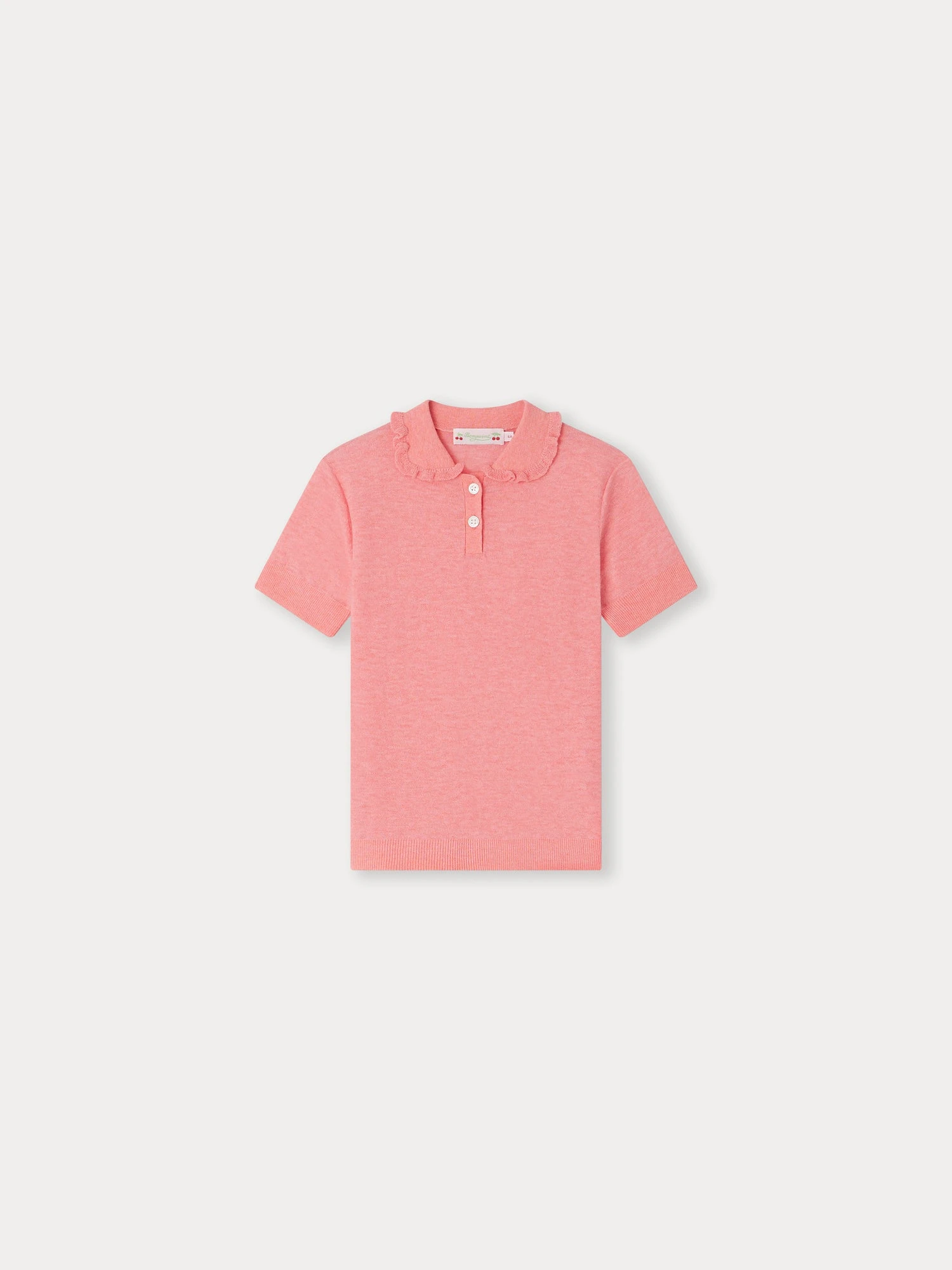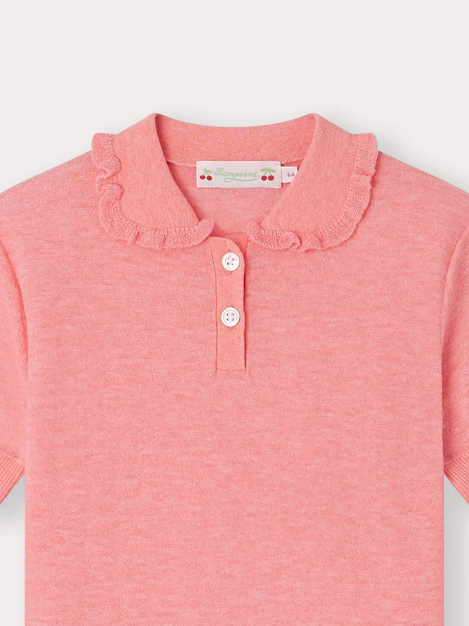 Ce pull à manches courtes pour fille Frynja est ravissant avec son col polo bordé d’un délicat volant. Il est confectionné dans une fine maille unie pour des associations faciles.