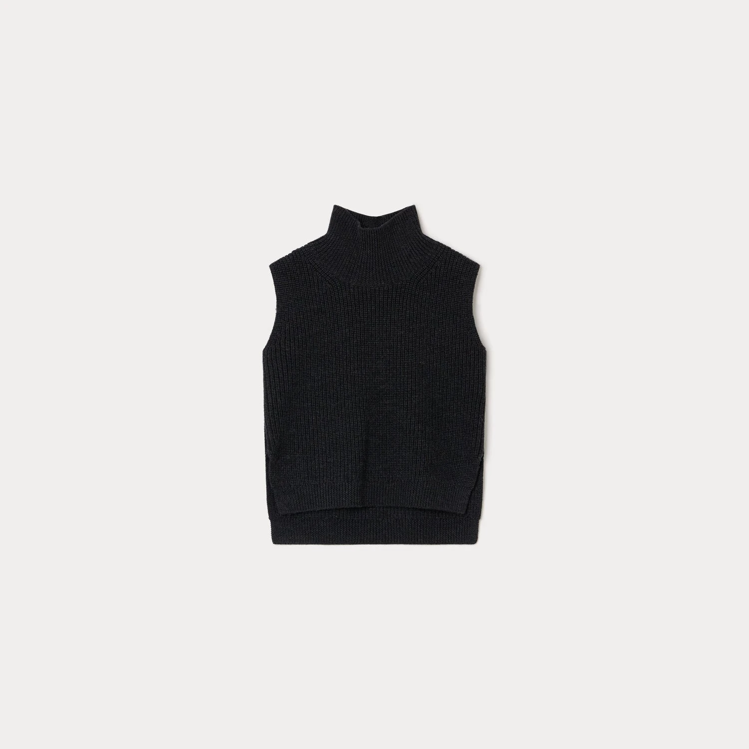 En laine mérinos, ce pull sans manches Bouchra pour fille est structuré par un large col montant, des fentes latérales et un dos surbaissé. Chaud et moelleux, il est tricoté en côtes anglaises. A la fois douce, résistante et biodégradable, cette fibre naturelle est particulièrement conçue pour les peaux les plus sensibles. L’exigence dans le choix de matières de qualité confère à cette pièce de durer et d’être transmise de saison en saison.