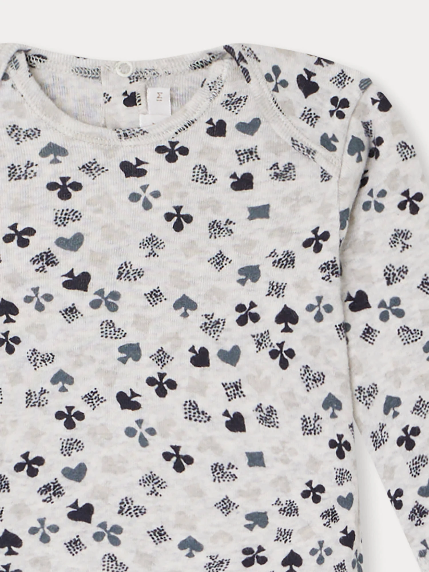 Confectionné en coton biologique, ce pyjama pour bébé Catia est très original avec son imprimé inspiré du traditionnel jeu de cartes. Il se ferme à l’aide de pressions au dos.