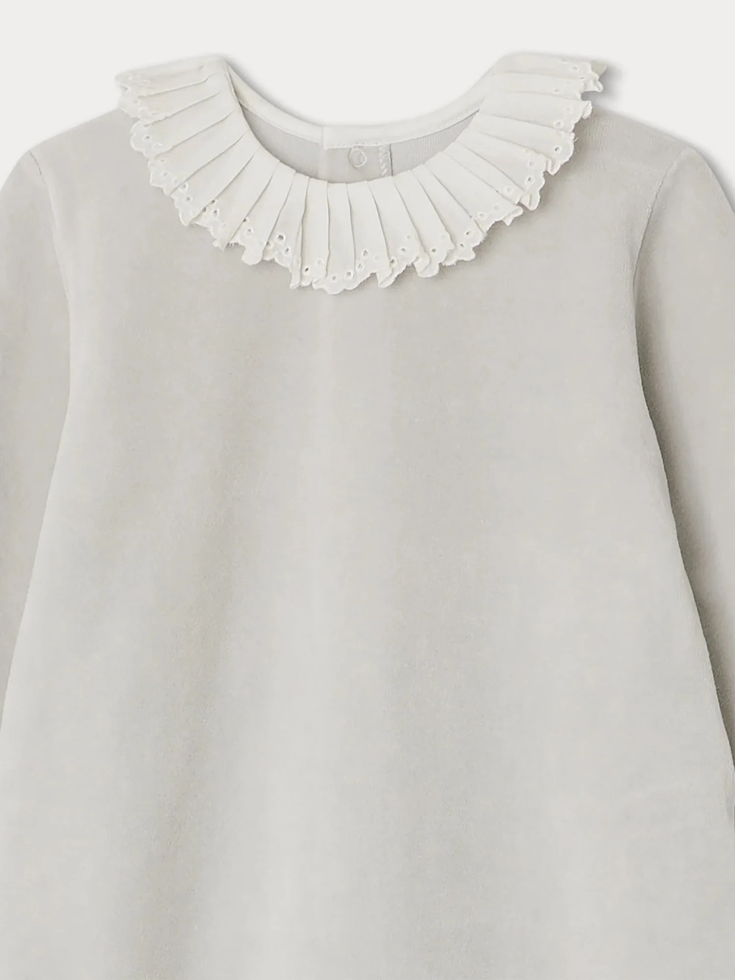Ce pyjama pour bébé Héritier est très élégant avec sa collerette ornée de broderie anglaise. Confectionné en tissu éponge velours, il séduit par sa douceur et sa chaleur.