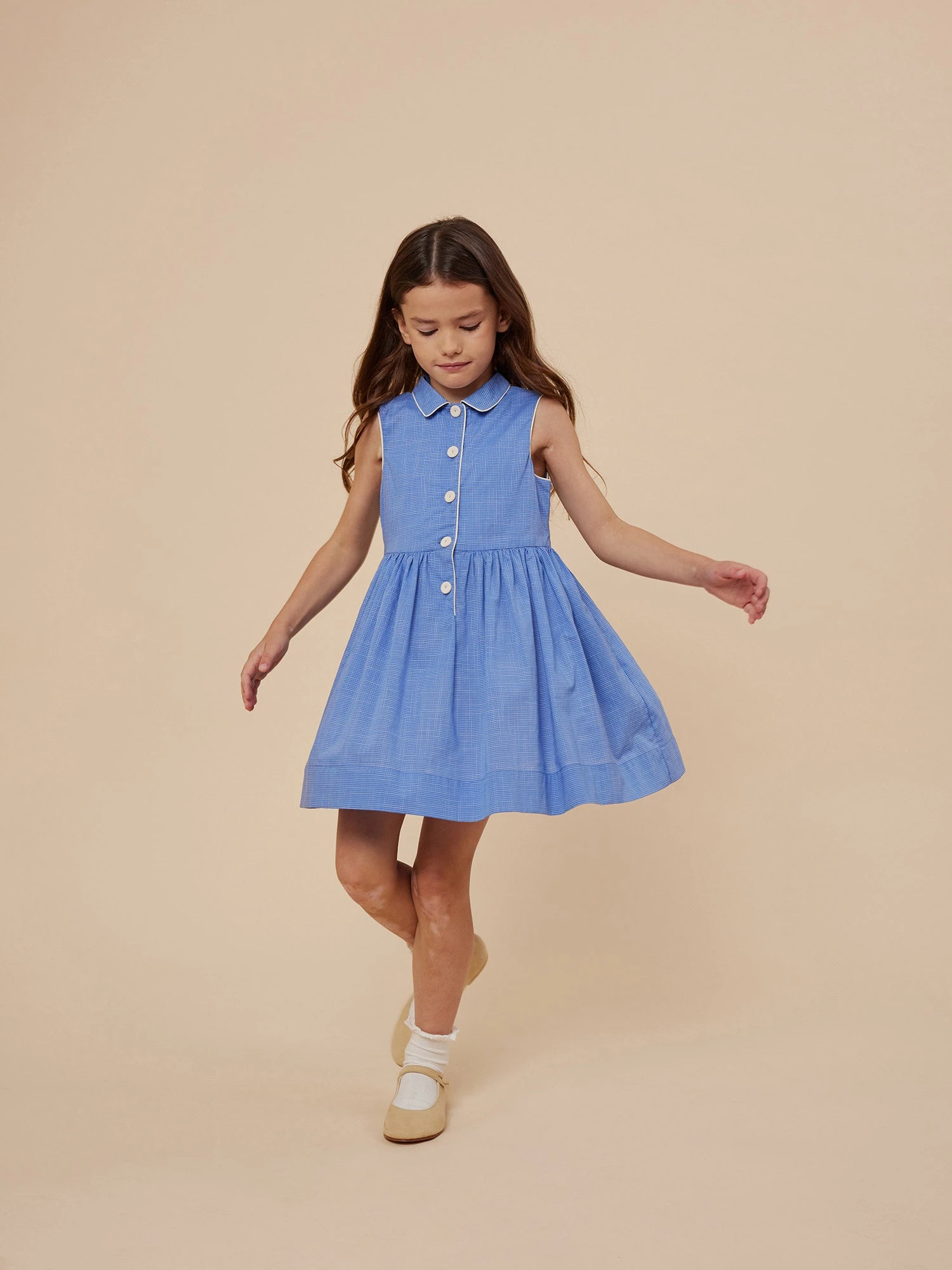 Pleine de jolis détails, cette robe-chemisier Anne pour fille s’ouvre sur le devant par 5 gros boutons recouverts. La coupe sans manches est rehaussée d’un col chemise et d’emmanchures à passepoil contrastant.
