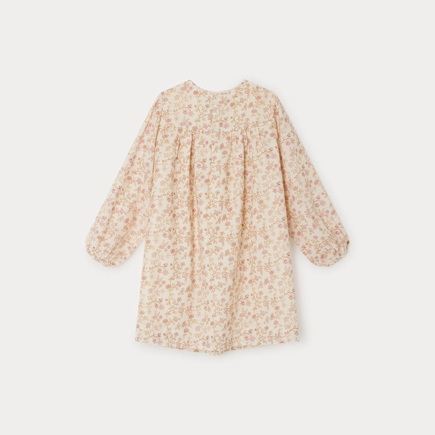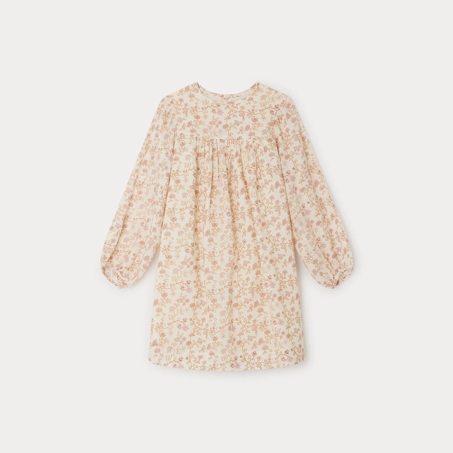 Cette robe pour fille Balamine affiche une allure bohème avec son imprimé floral et son délicat jeu de fronces sur le buste. Les poignets sont élastiqués.