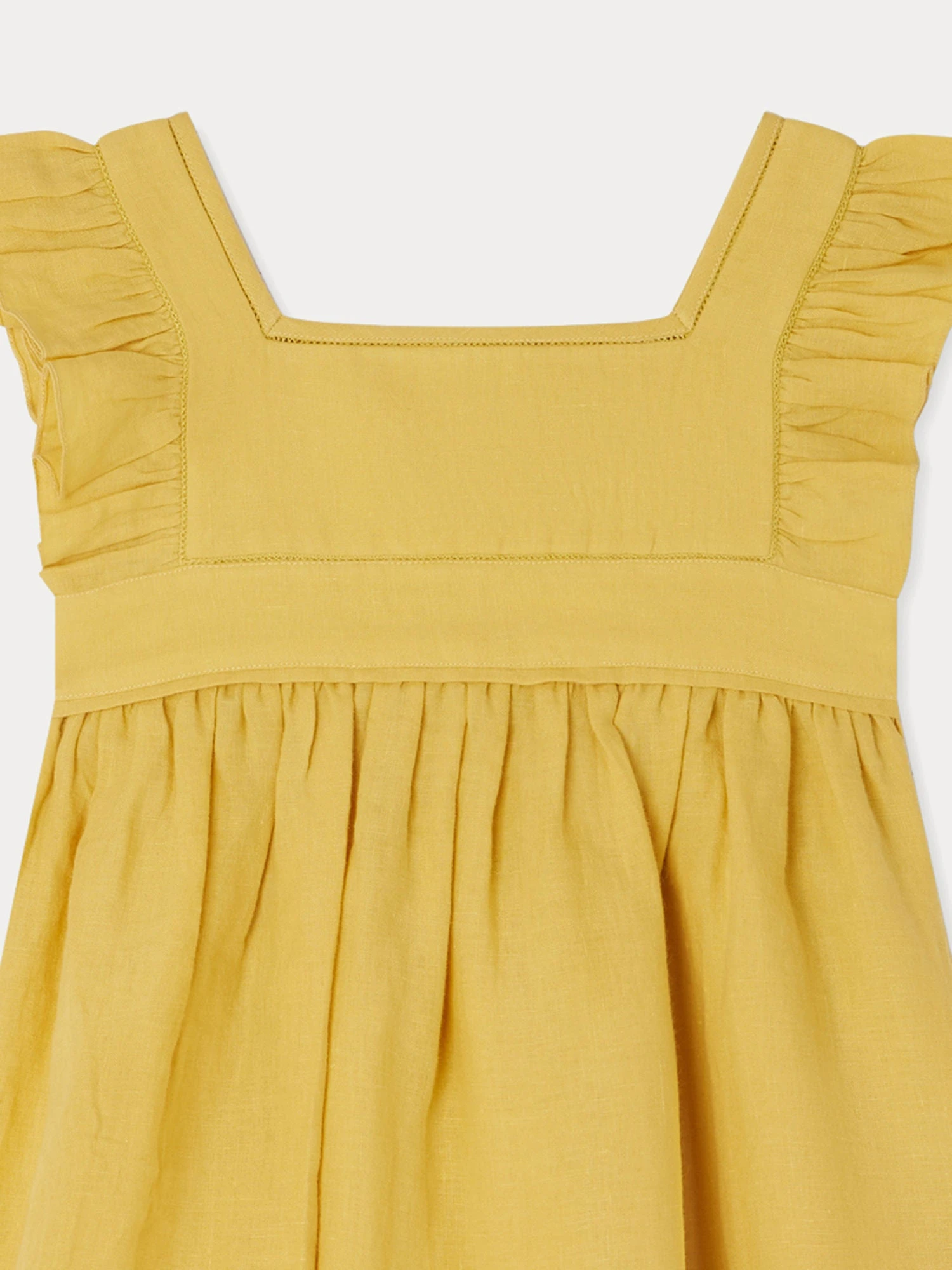 Avec son tissu en lin uni au ton chaud, la robe Cassiopee met de la gaieté dans la garde-robe des filles. Un empiècement géométrique souligne l’encolure carrée originale.