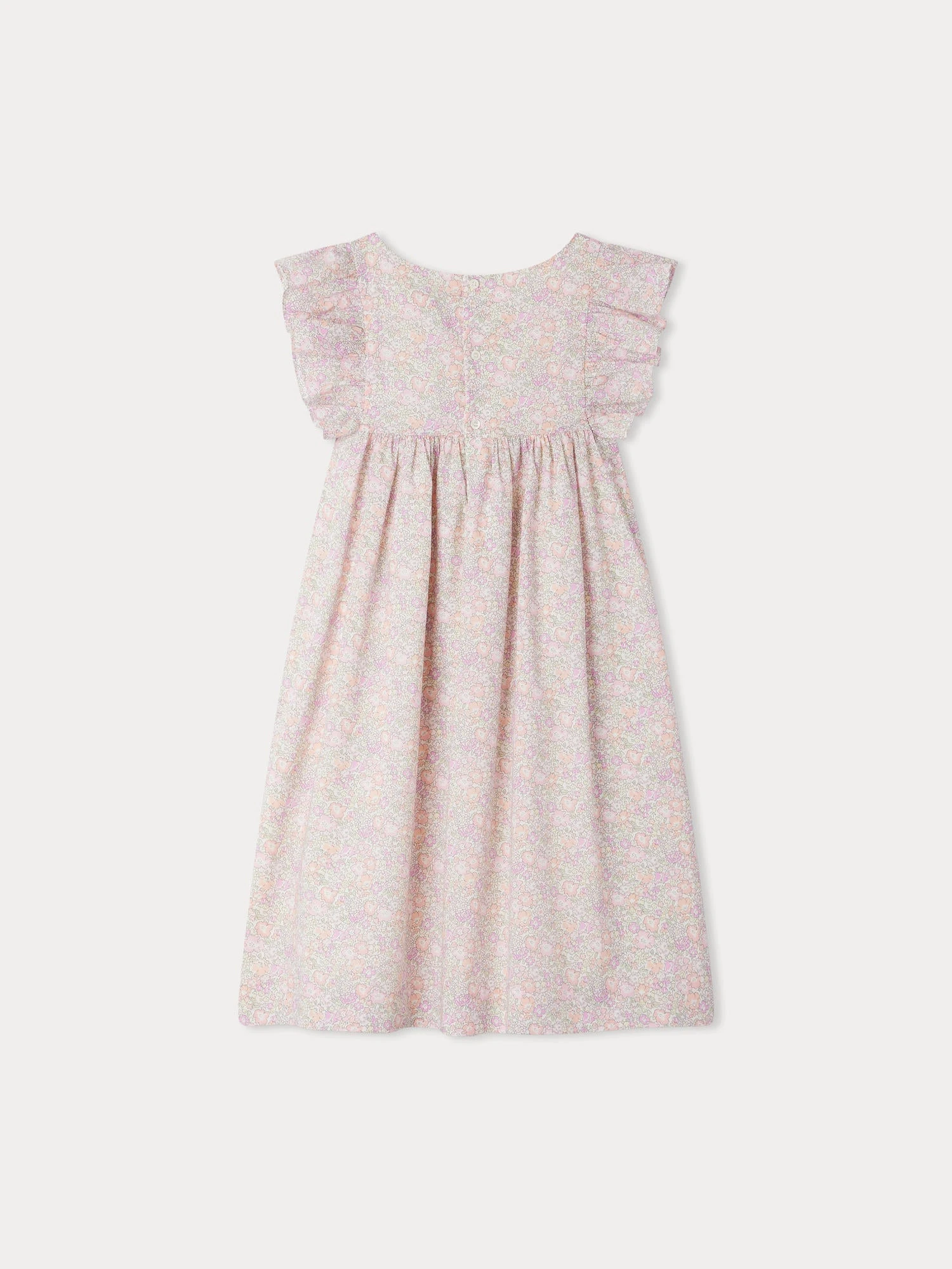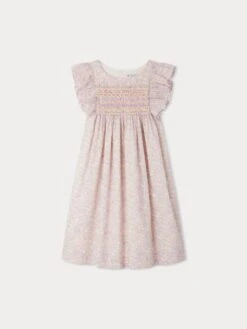 Cette robe pour fille Fiorella rivalise d’élégance avec ses smocks brodés à la main sur le buste. Elle est confectionnée en coton biologique, dans un tissu Liberty à l’accent bohème.